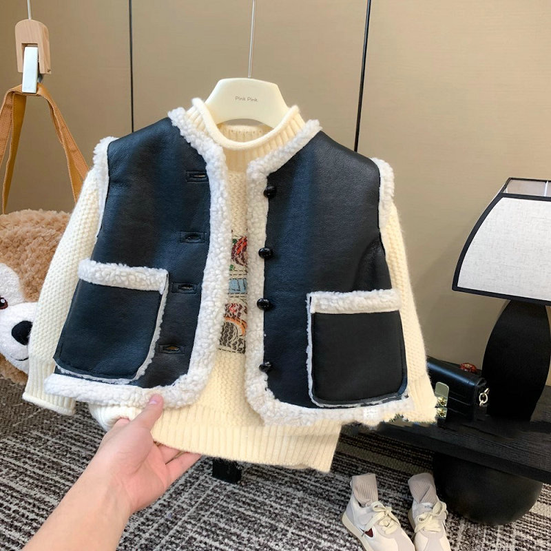 男童女童马甲鹿皮绒复合羊羔绒冬季保暖坎肩上衣2025新款外贸童装