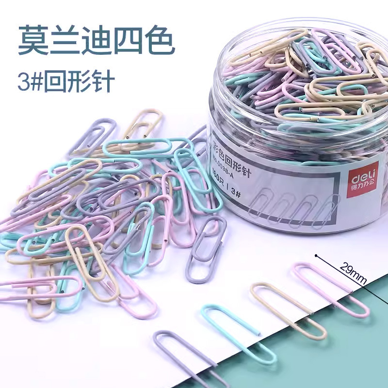 델리 0038 종이 클립 박스형 금속 니켈 도금 컬러 핀 대형 사무실 용품 3 종이 클립 도매스토어 가기