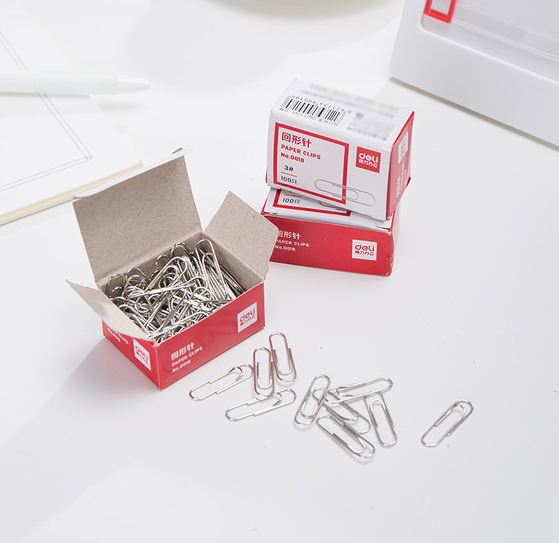 델리 0038 종이 클립 박스형 금속 니켈 도금 컬러 핀 대형 사무실 용품 3 종이 클립 도매