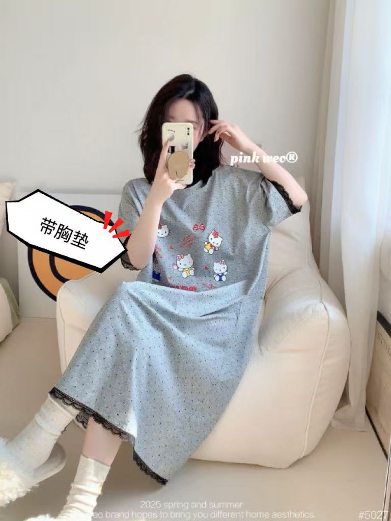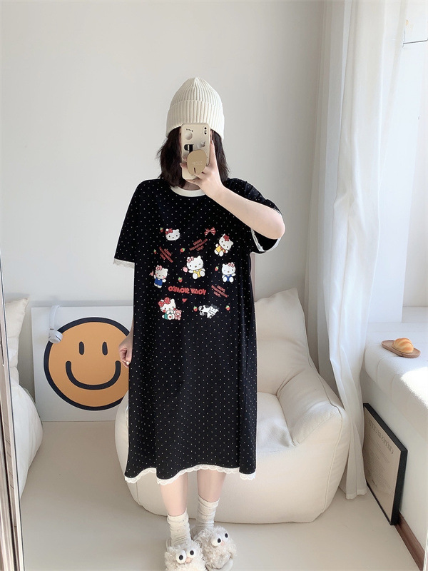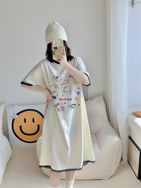 핑크웨오 봄 · 여름 뉴 도트 KT 반팔 긴팔 원피스 스위트 레이스 홈 의류 여성 캐주얼 파자마스토어 가기