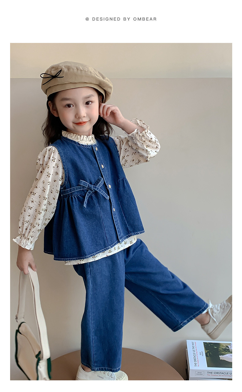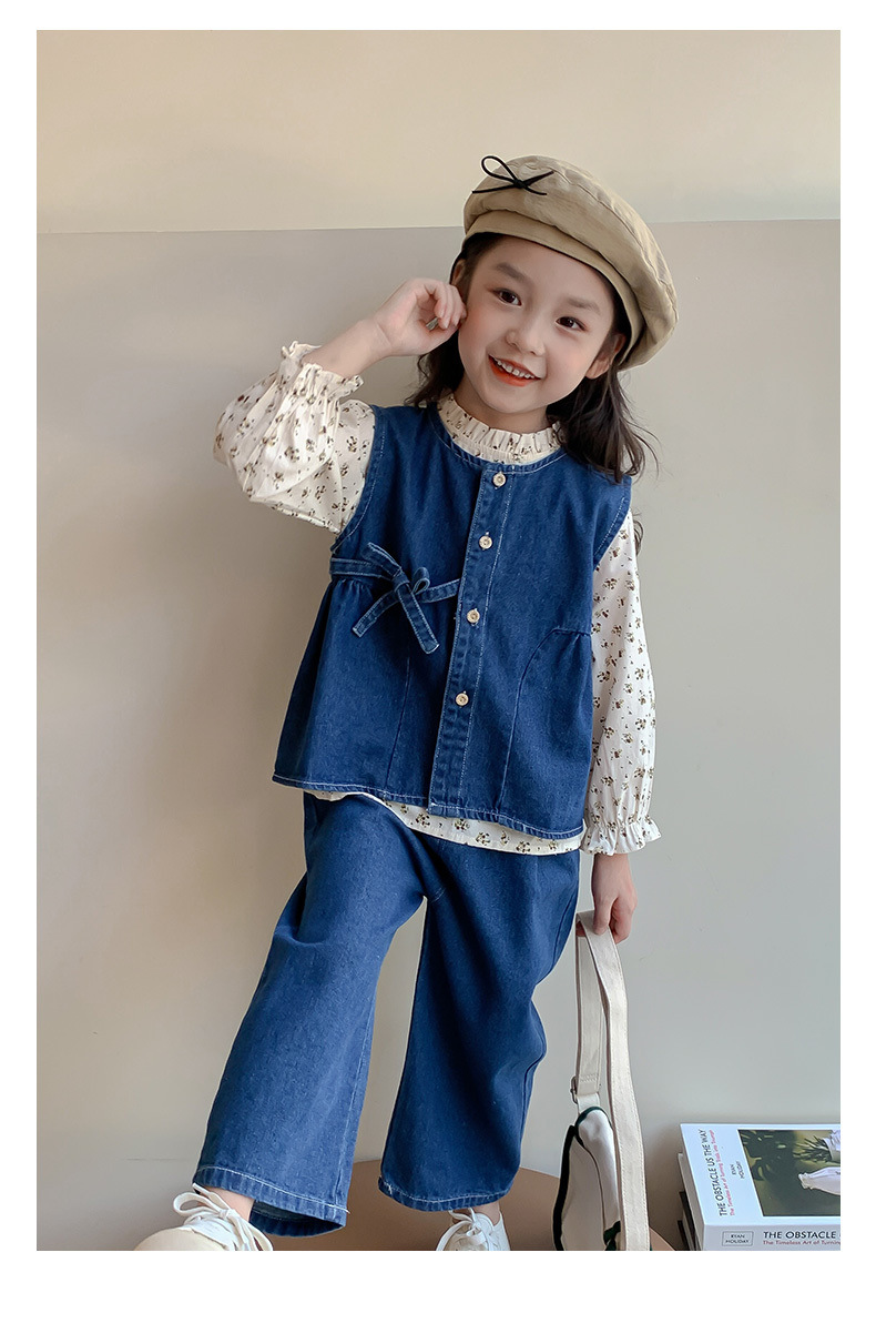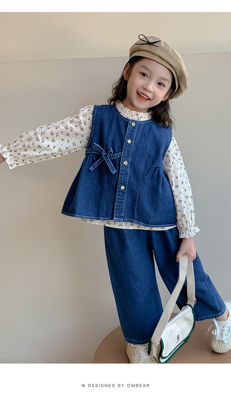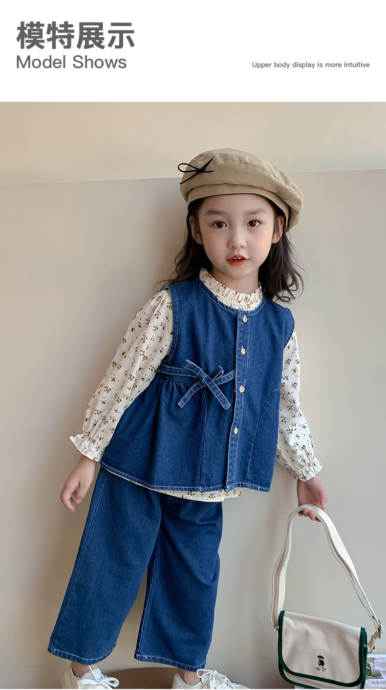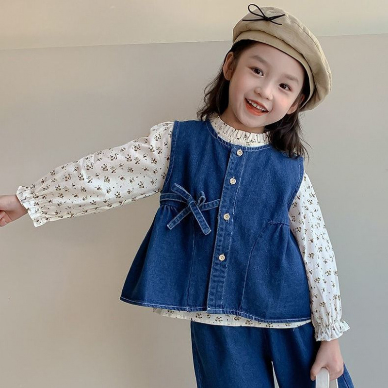 소녀 가을 봄 세트 2025 새로운 서양 스타일 데님 이른 가을 봄 가을 소녀 아기 봄 가을 한국 스타일스토어 가기