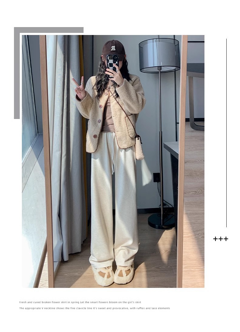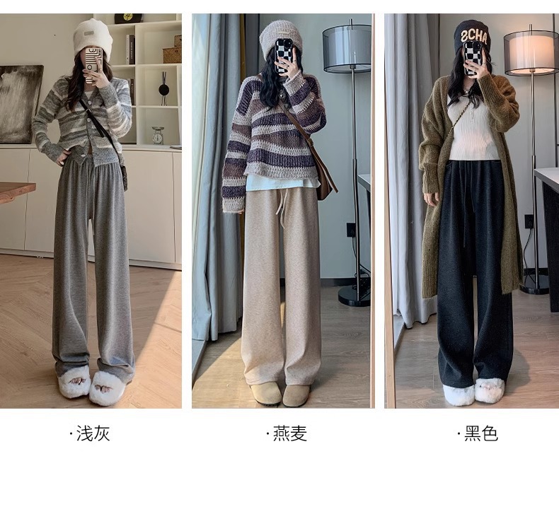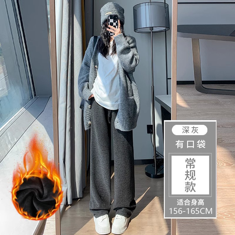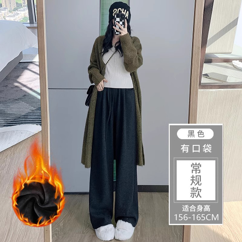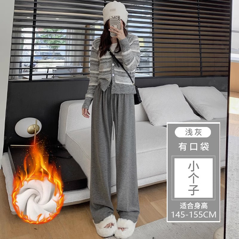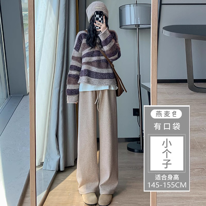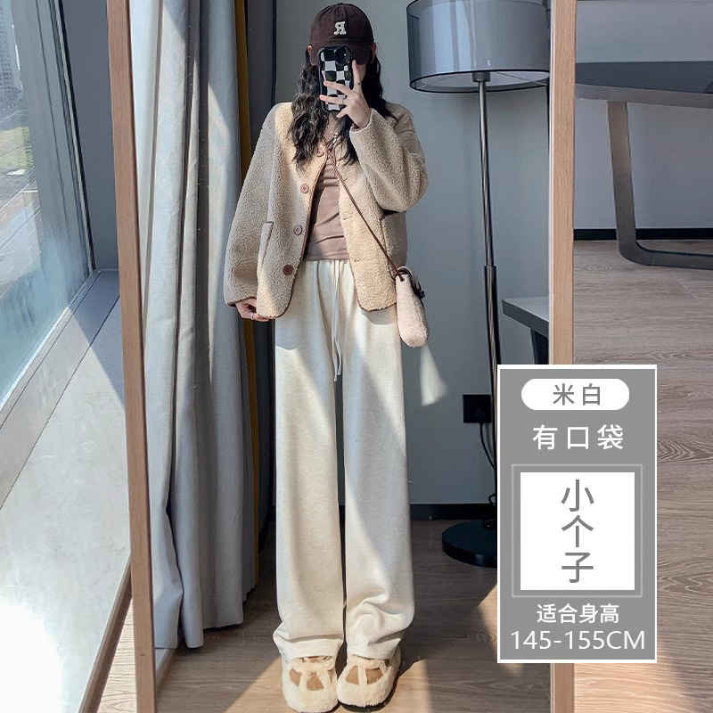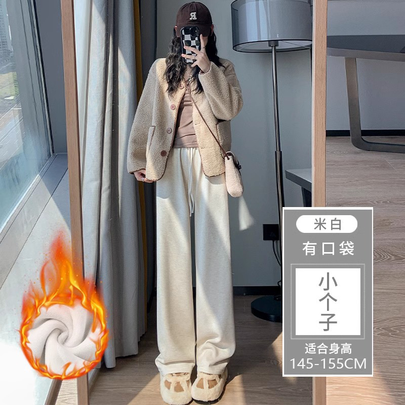 145 작은 아이보리 기모 넓은 다리 바지 여성 봄 가을과 겨울 150 높은 허리 게으른 스트레이트 찹쌀 바지를 투약스토어 가기