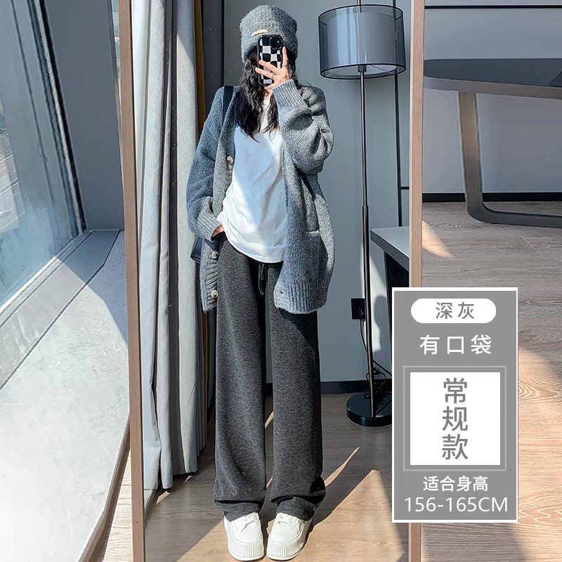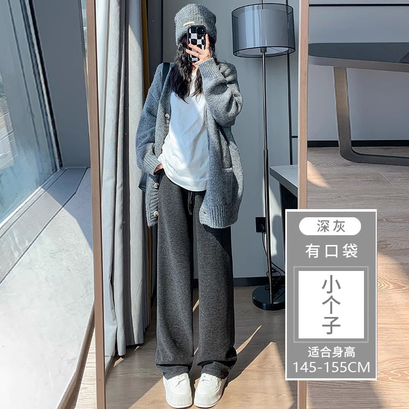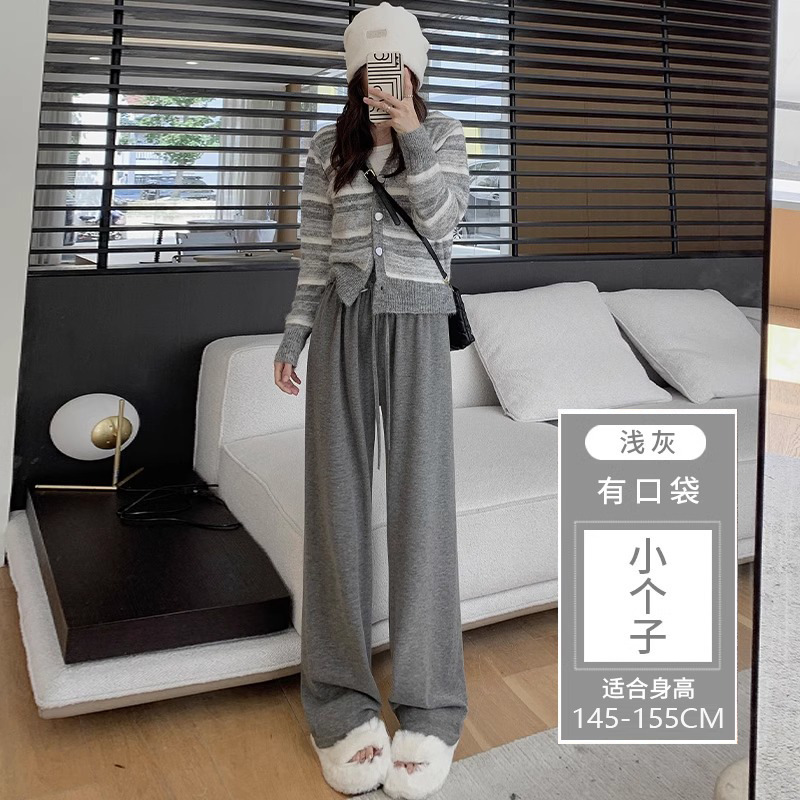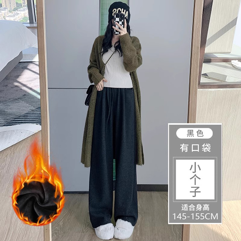 145 작은 아이보리 기모 넓은 다리 바지 여성 봄 가을과 겨울 150 높은 허리 게으른 스트레이트 찹쌀 바지를 투약