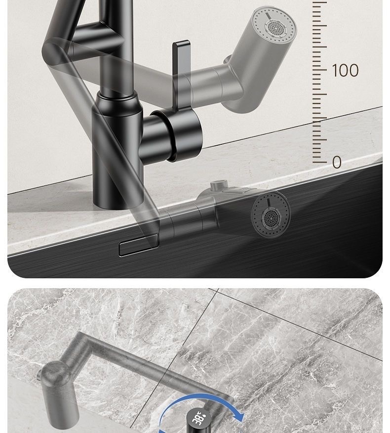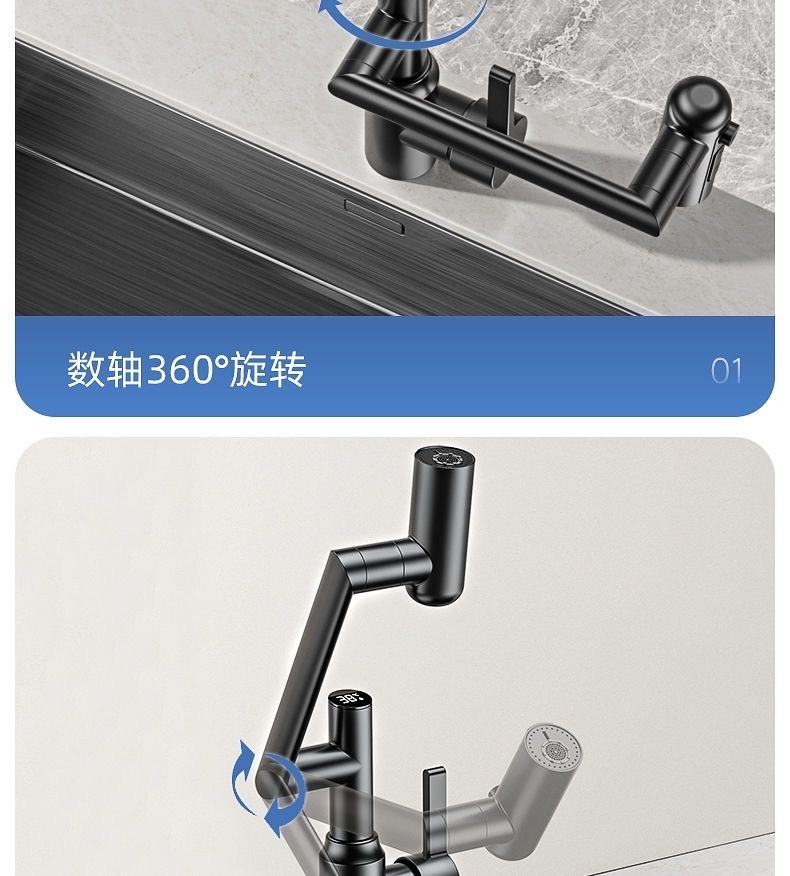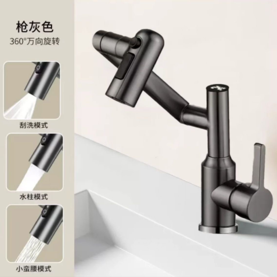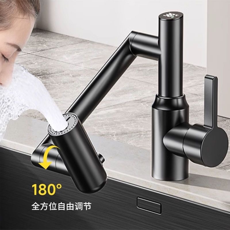 모든 구리 디지털 디스플레이 행운의 고양이 물 도금 총 회색 회전 가능한 스크레이핑 빛 럭셔리 분지 세척 분지 욕실 수도꼭지