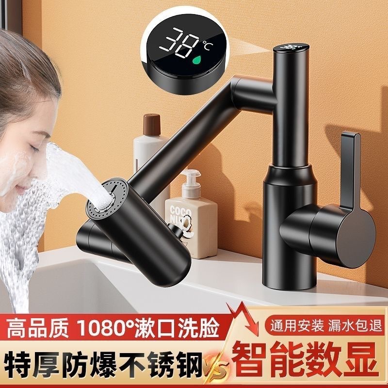 모든 구리 디지털 디스플레이 행운의 고양이 물 도금 총 회색 회전 가능한 스크레이핑 빛 럭셔리 분지 세척 분지 욕실 수도꼭지스토어 가기