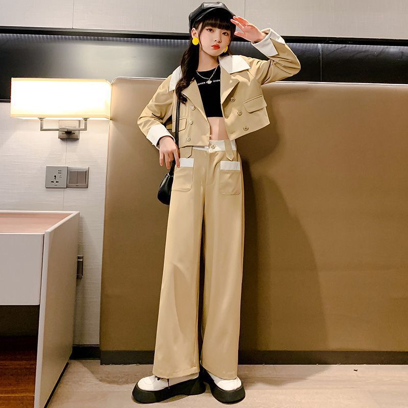 소녀의 봄과 가을 세트 세트 2025 새로운 스타일 유행 작은 향기로운 스타일 여자 대학 스타일 투피스 세트