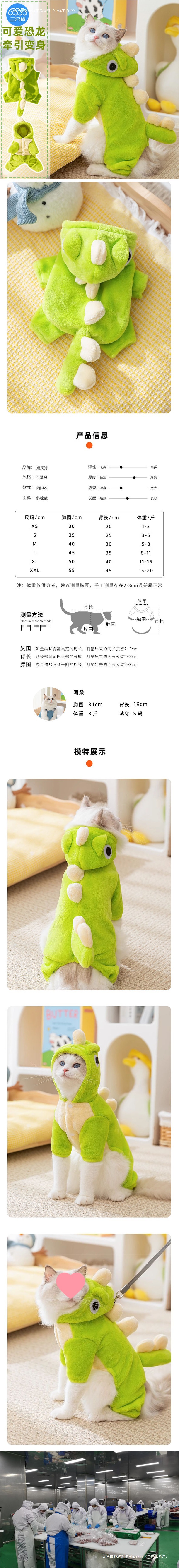 Miao Xin 애완 동물 용품 견인 공룡 고양이 옷 가을과 겨울 새끼 고양이 강아지 고양이 Ying 짧은 파란 고양이 고양이 반대로 머리
