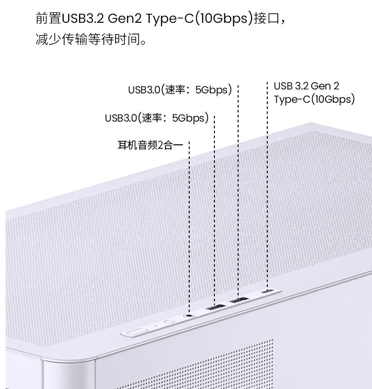 USB3.2 Gen2 Type-C*1(10Gbps+)/USB3.0*2/AUDIO*1&MIC*1(2合1)