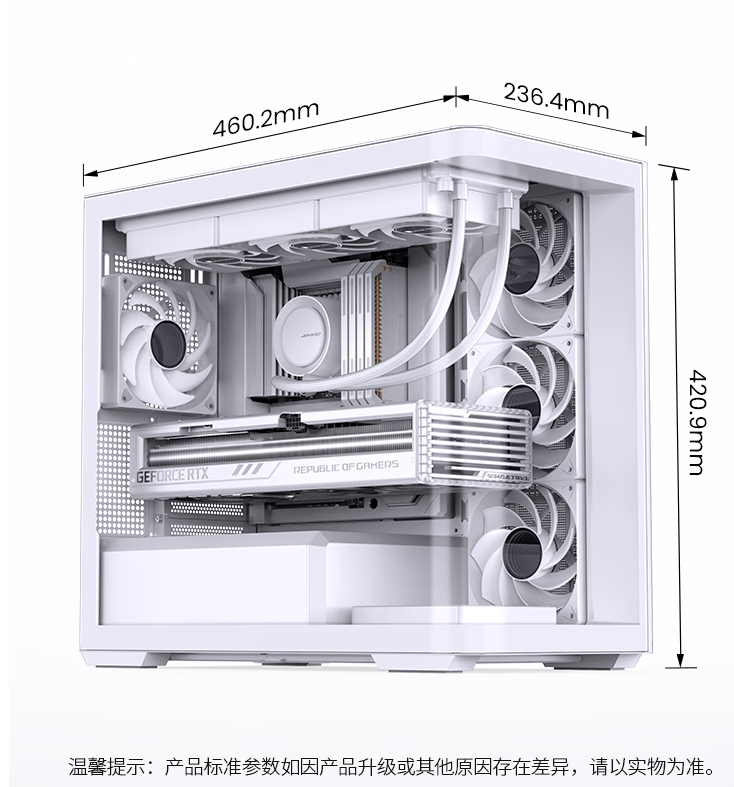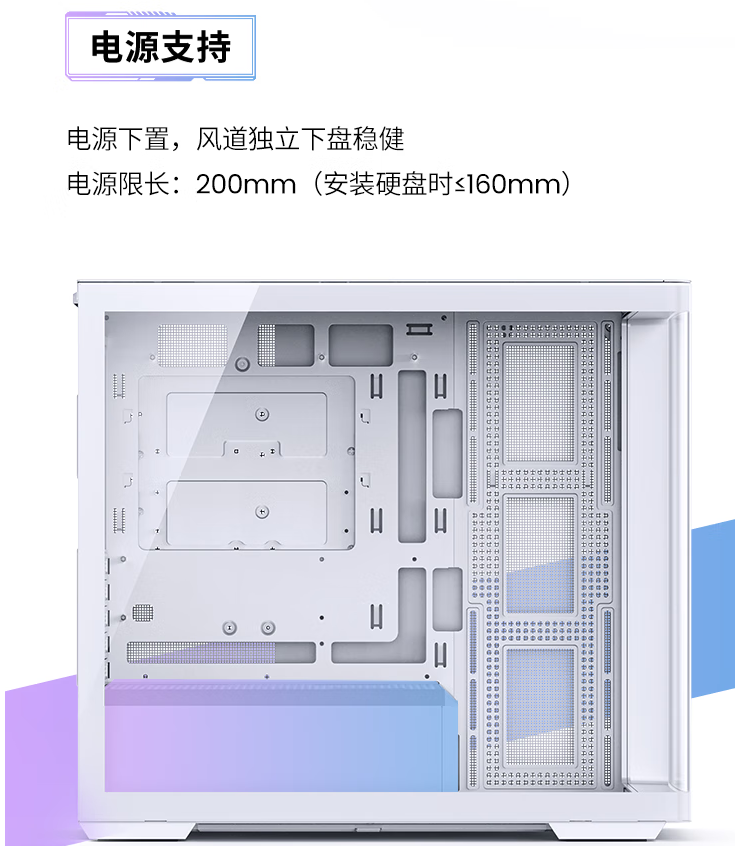 乔思伯(JONSBO)D300 MATX机箱(无立柱曲面海景房/360冷排/ATX电源/10风扇位/Type-c Gen2 10Gbps+)