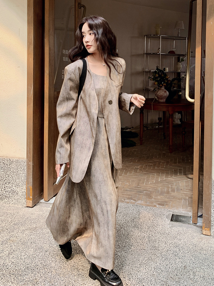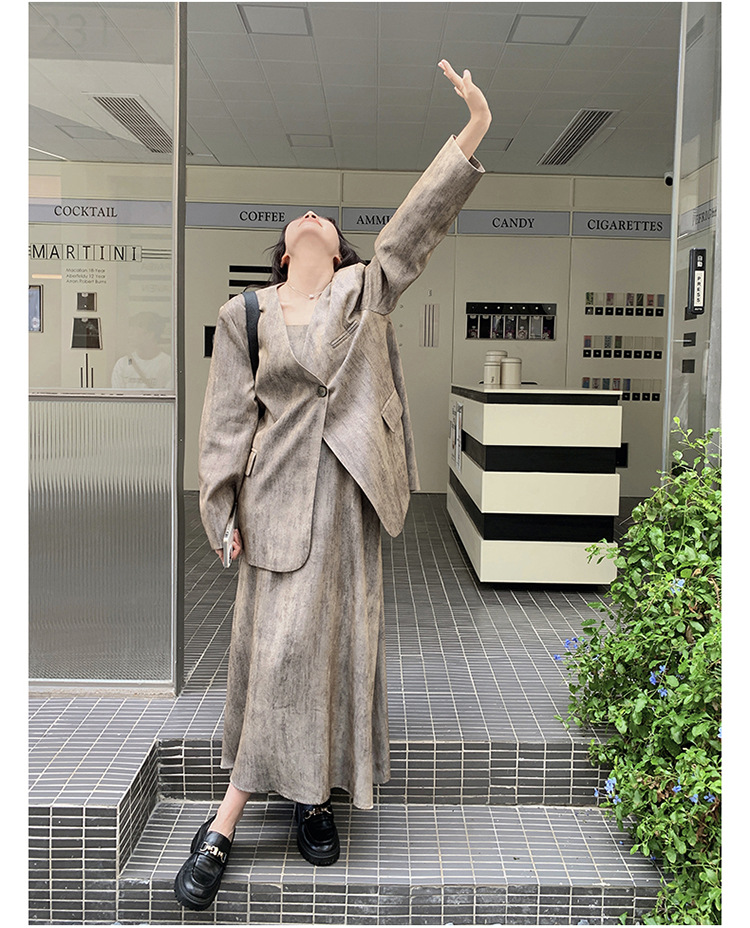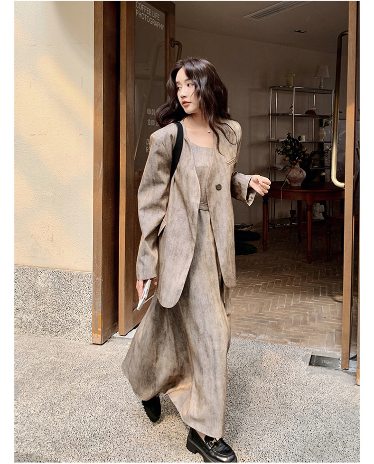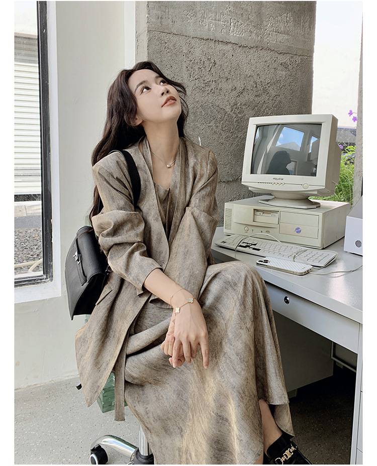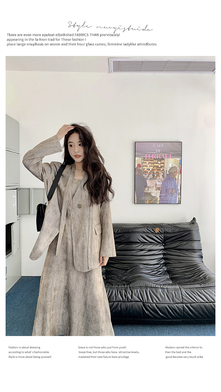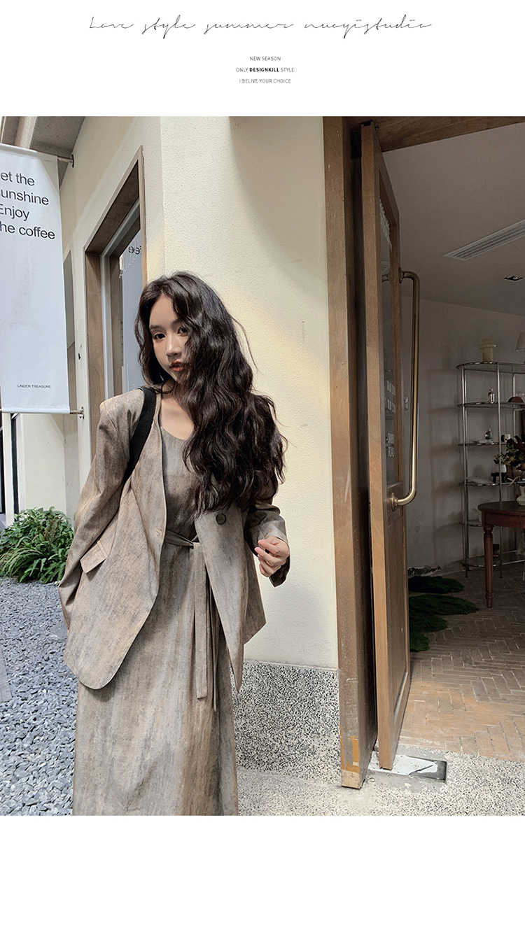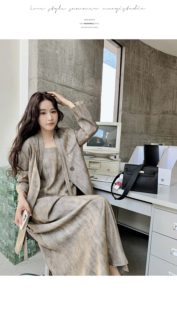 가벼운 성숙한 왕실 자매 스타일 세트 원피스 여성의 2025 봄 새로운 감각 다이 슬링 원피스 투피스 세트스토어 가기