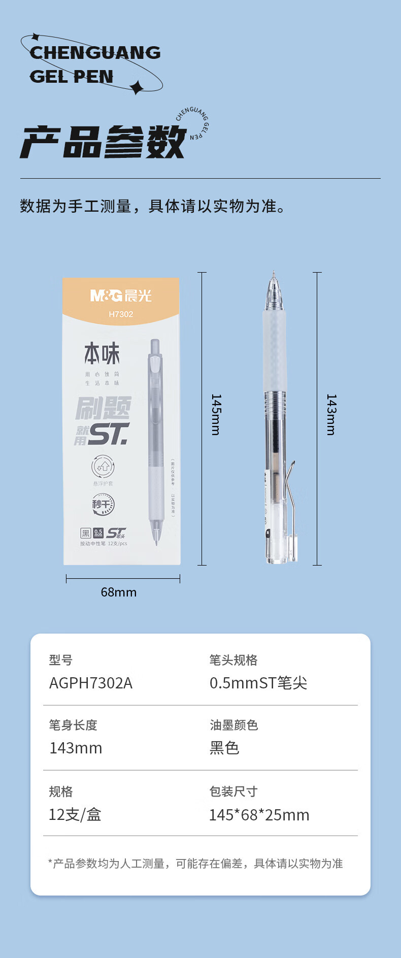 Chenguang AGPH7302 프레스 젤 펜 ST 헤드 0.5 학생 브러쉬 질문 펜 클라우드 터치 빠른 건조 사인 펜스토어 가기