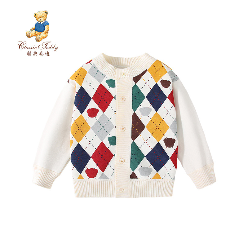 클래식 테디 아동복 어린이 니트 카디건 봄 소년 스웨터 코트 걸스 코트 컬러 매칭 올 매치 서양식