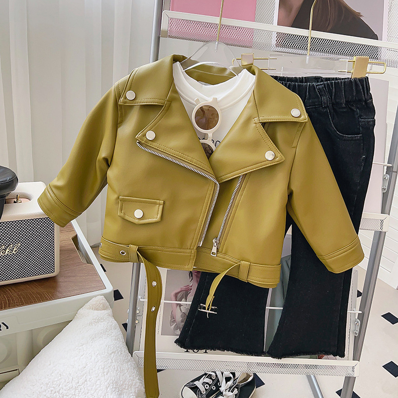 소녀 가죽 2025 가을 새로운 어린이 서양식 한국 아기 바이커 코트 봄 가을 재킷 탑스토어 가기