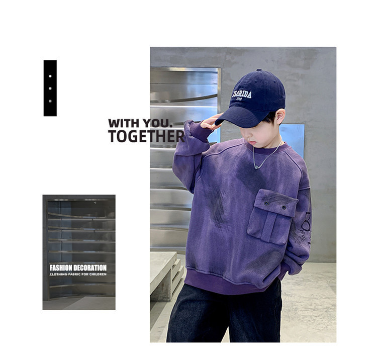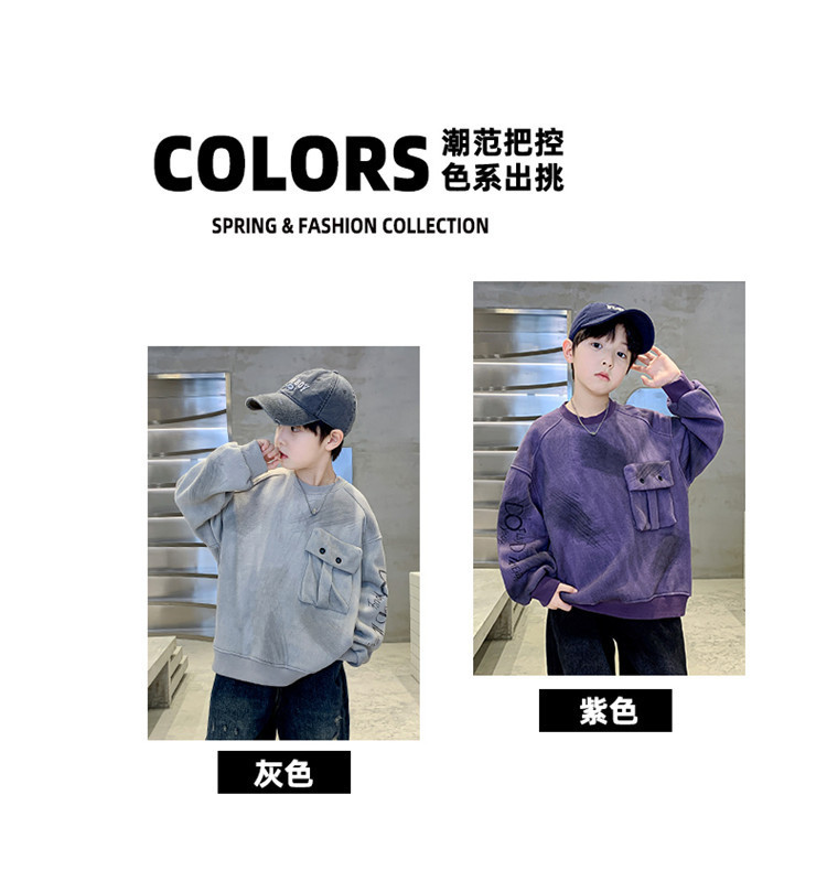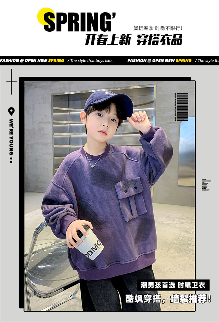 소년 스웨터 봄 2025 새로운 어린이 스포츠 레저베이스 셔츠 대형 어린이 포켓 타이 염색 스웨터 티셔츠 8스토어 가기