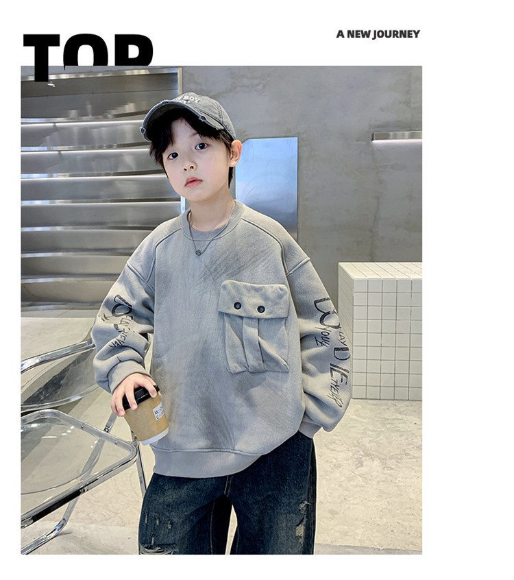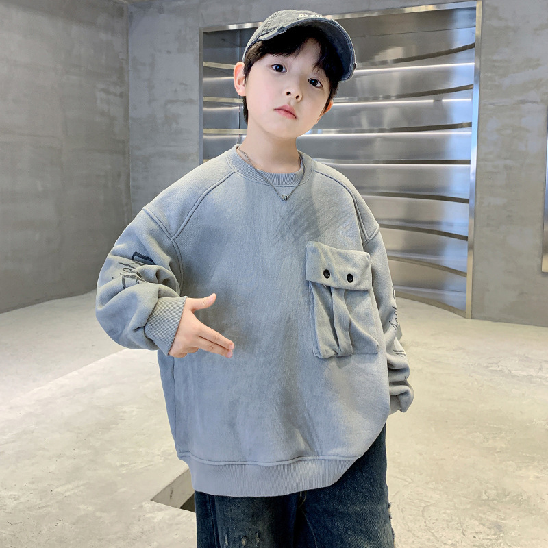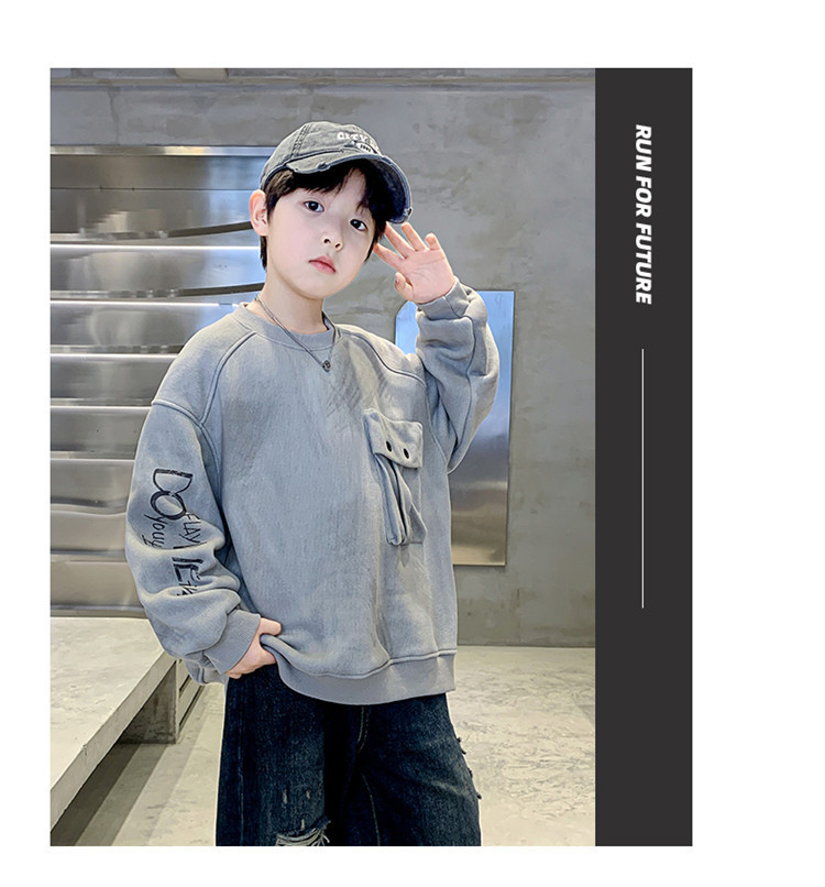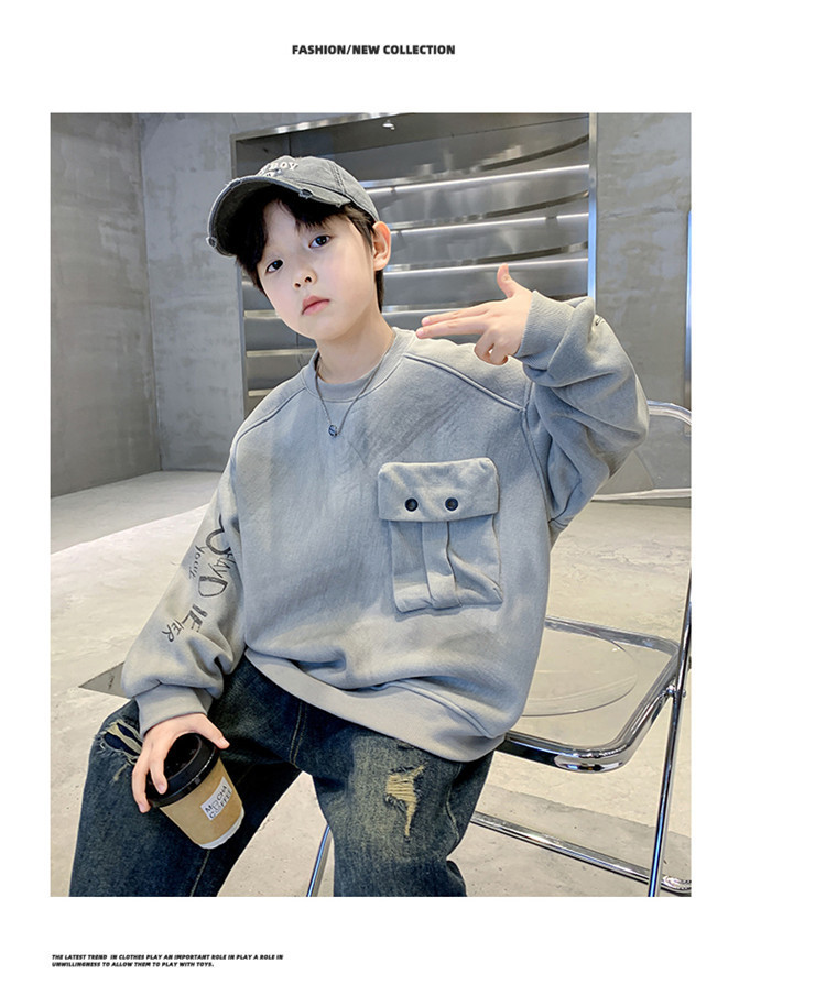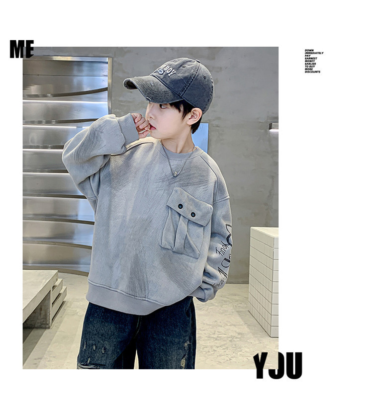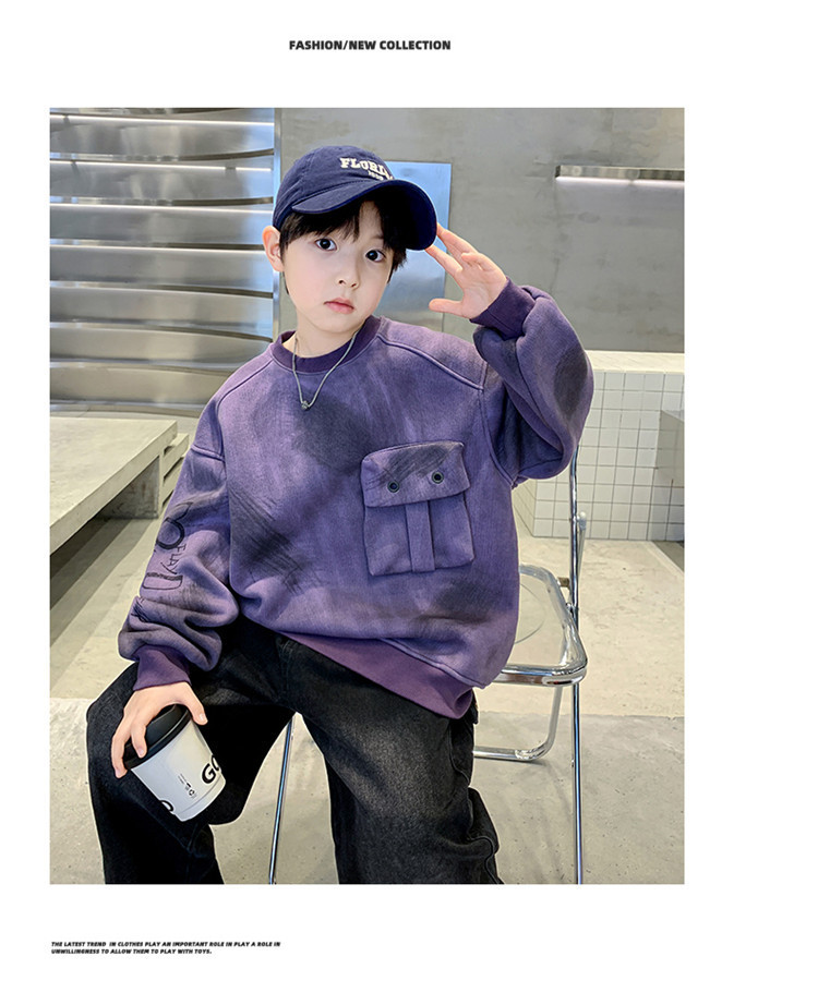 소년 스웨터 봄 2025 새로운 어린이 스포츠 레저베이스 셔츠 대형 어린이 포켓 타이 염색 스웨터 티셔츠 8