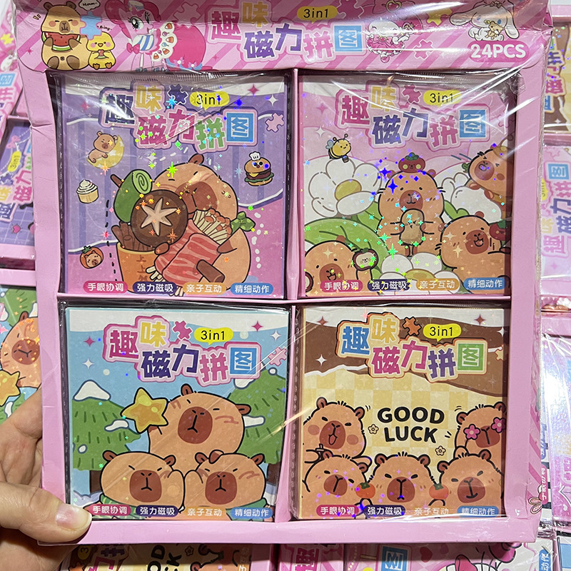 새로운 재미 접이식 자기 자기 자기 만화 퍼즐 카드 어린이 수제 DIY 컷프리 교육 장난감 도매스토어 가기