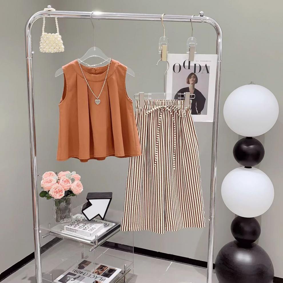 2025 새로운 여름 한국 스타일 유행 민소매 캐주얼 소녀 탑 바지스토어 가기