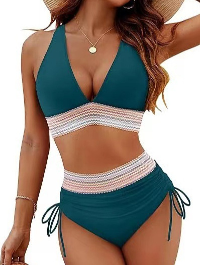 2025 국경 핫 비키니 수영복 여성 섹시 딥 V 넥 솔리드 컬러 타이트 수영복 아마존 하이 허리 벨리 커버스토어 가기
