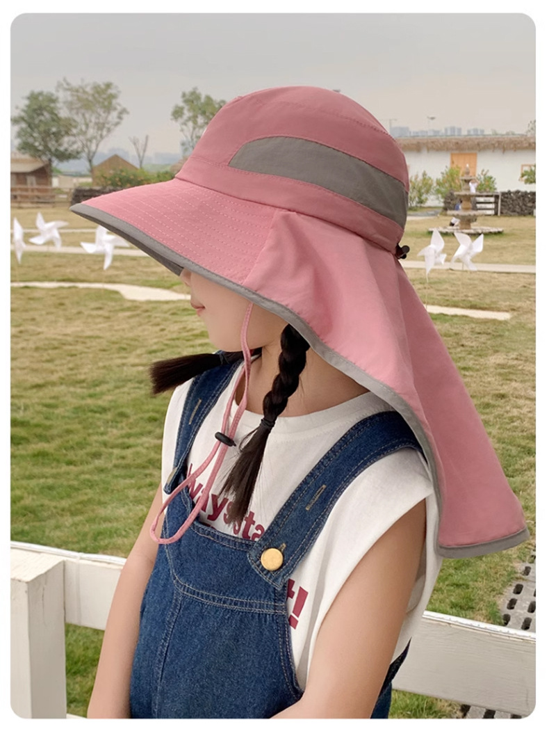 어린이 선 스크린 모자 UV 보호 소년 태양 모자 소녀 여름 빅 햇 브림 목도리 어부 모자 태양 모자
