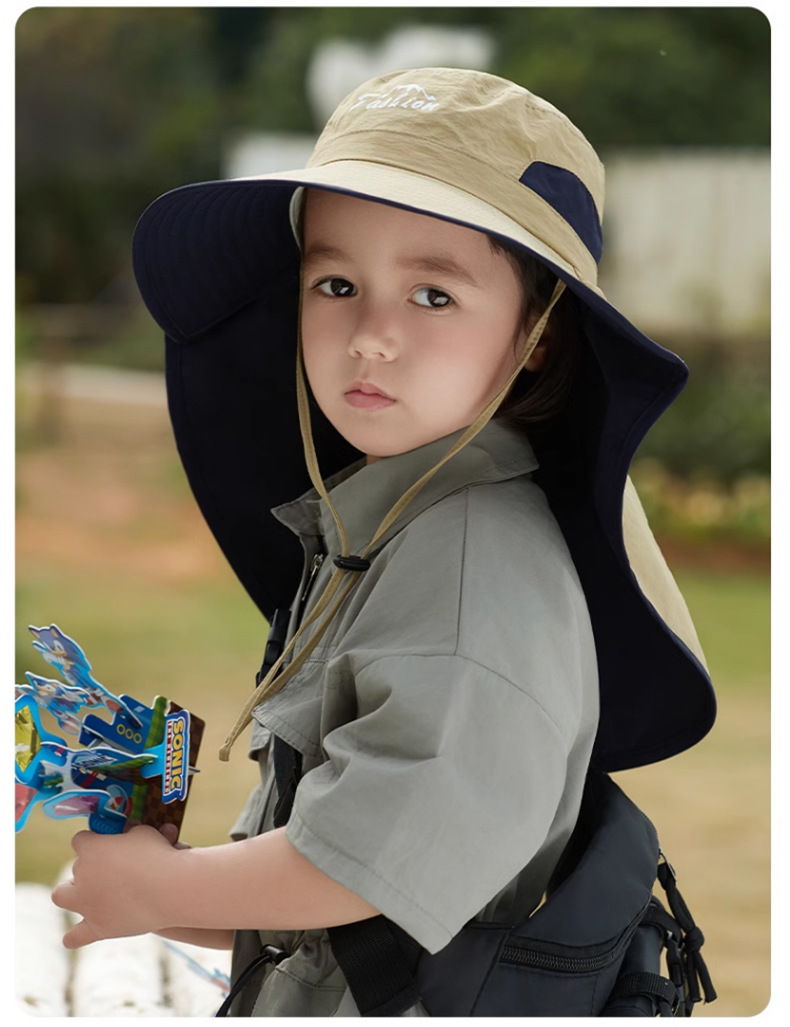어린이 선 스크린 모자 UV 보호 소년 태양 모자 소녀 여름 빅 햇 브림 목도리 어부 모자 태양 모자스토어 가기