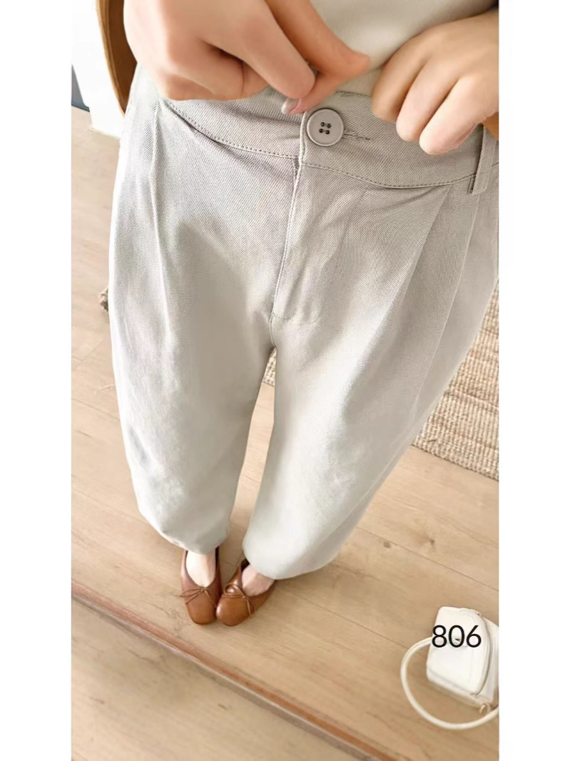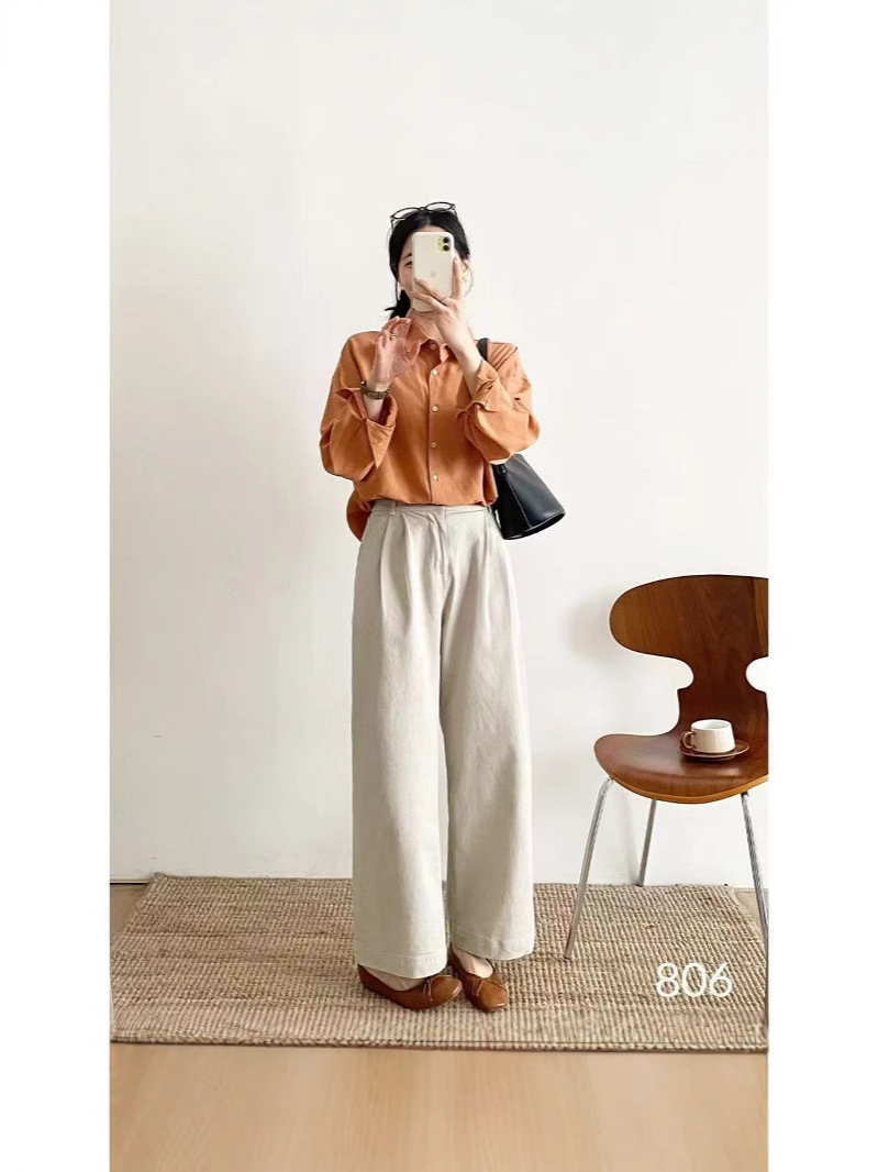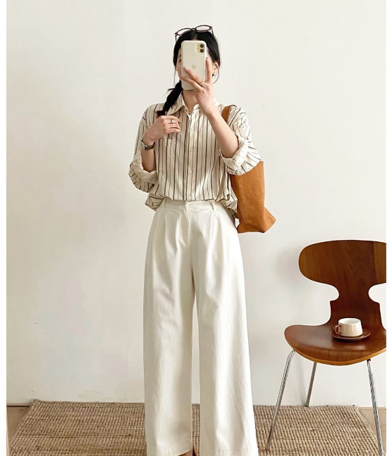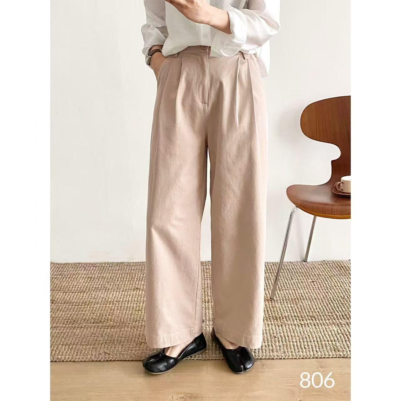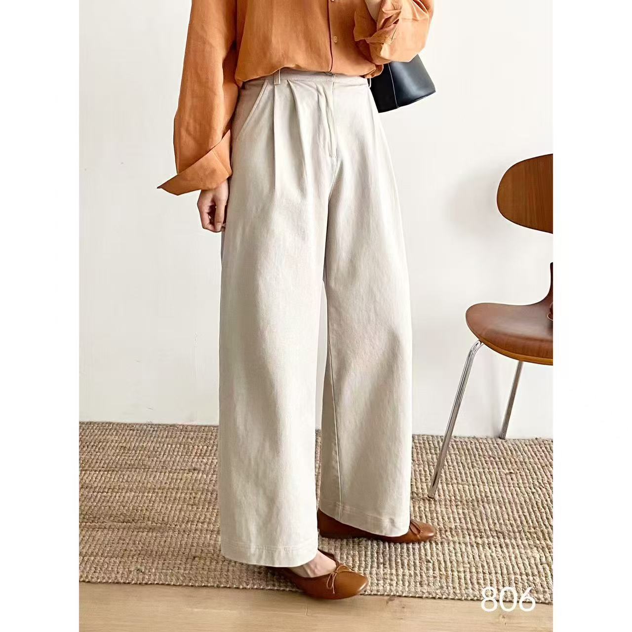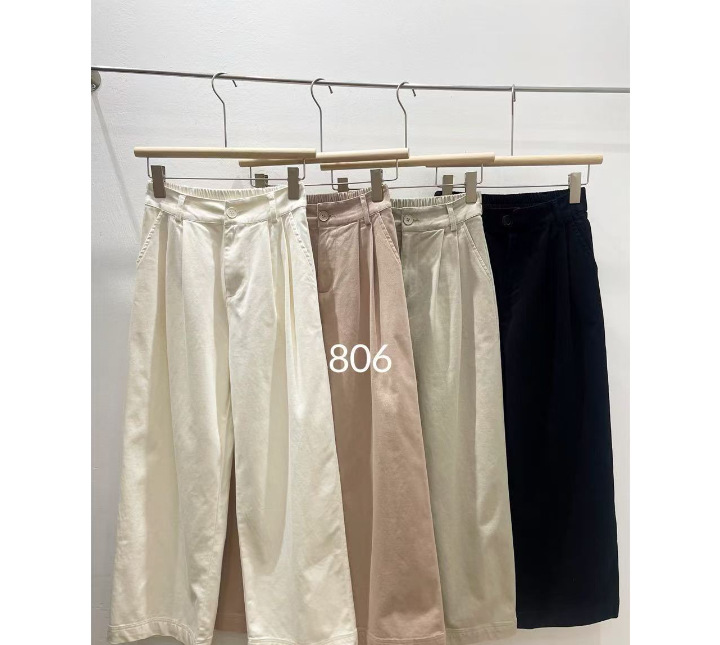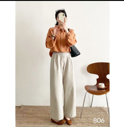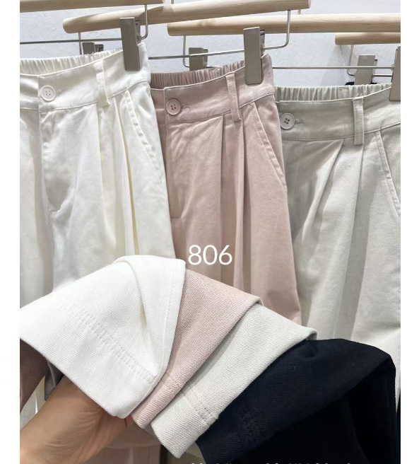 통근 다목적 솔리드 컬러 반탄성 허리 와이드 레그 팬츠 여성용 2025 봄 뉴 루즈 캐주얼 스트레이트 팬츠스토어 가기