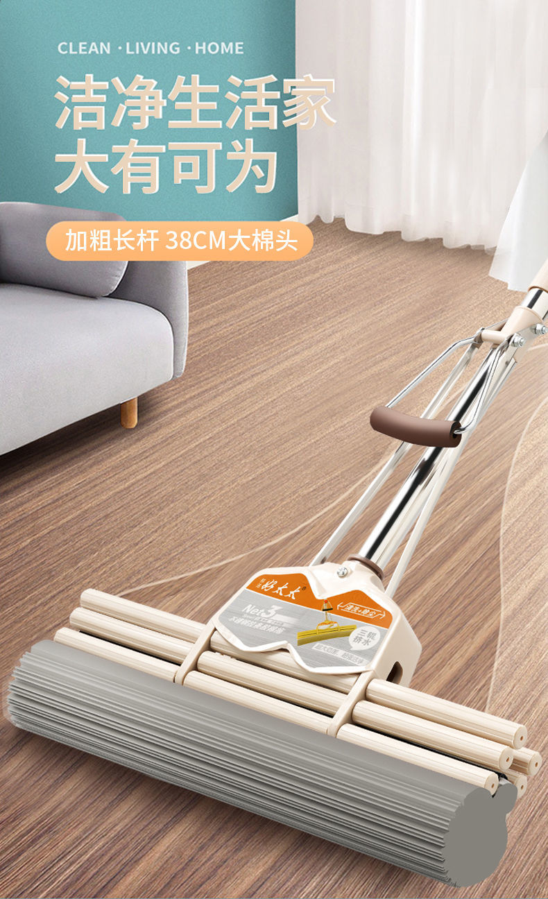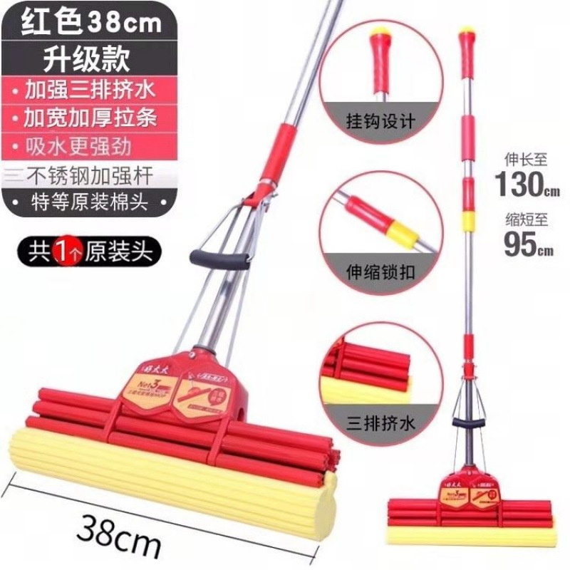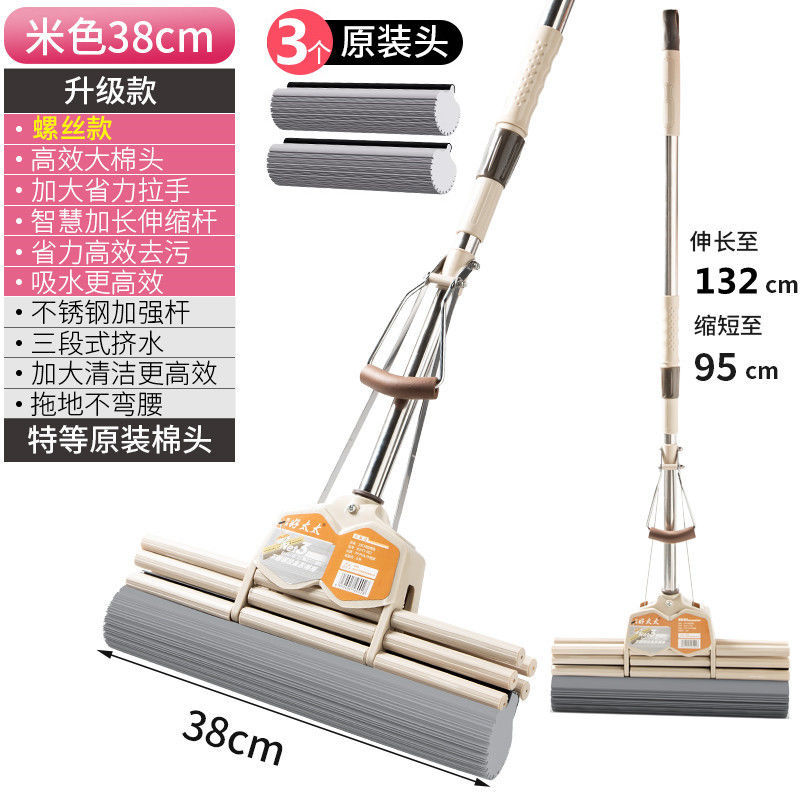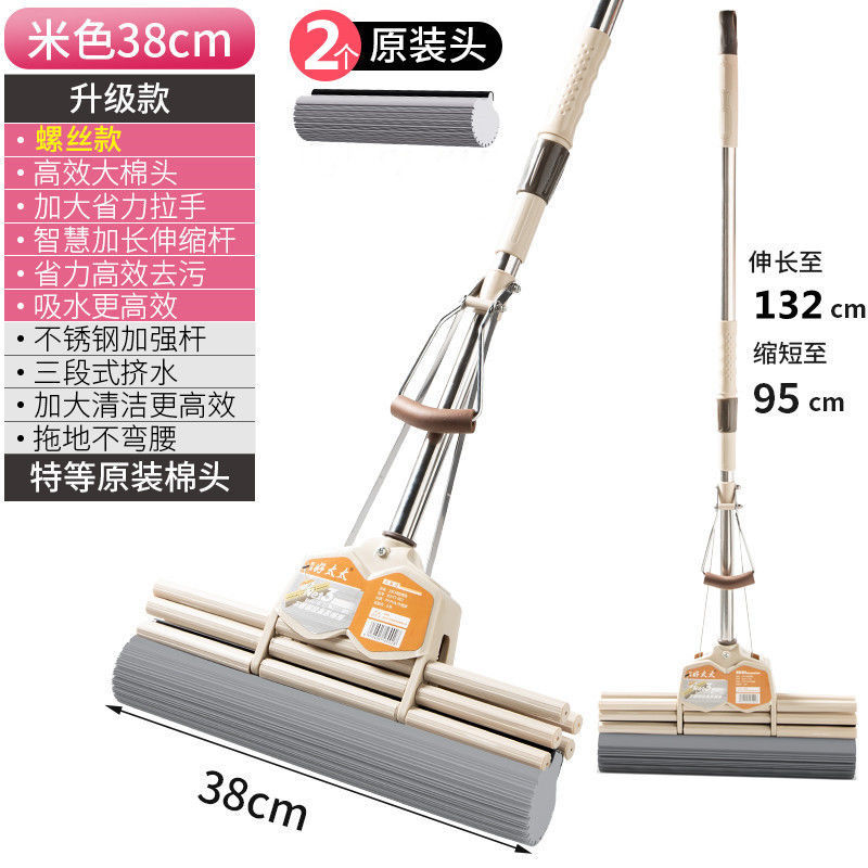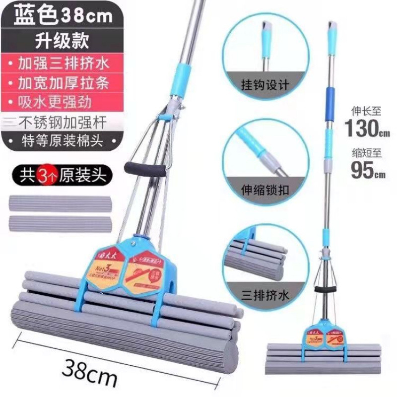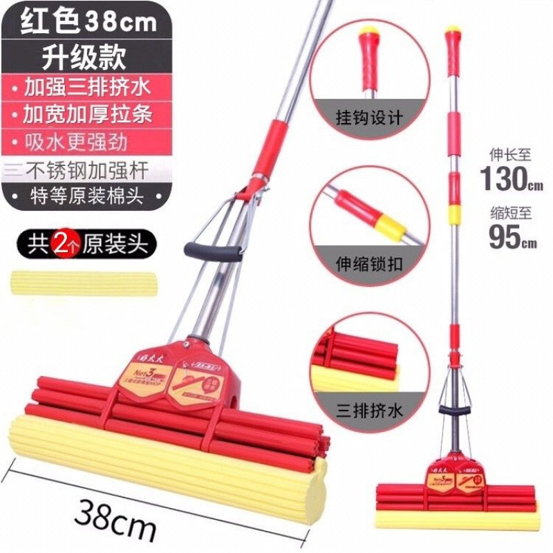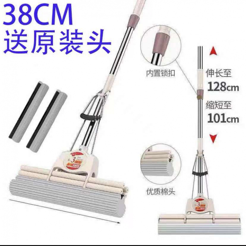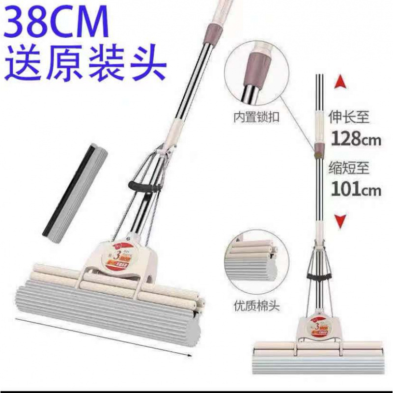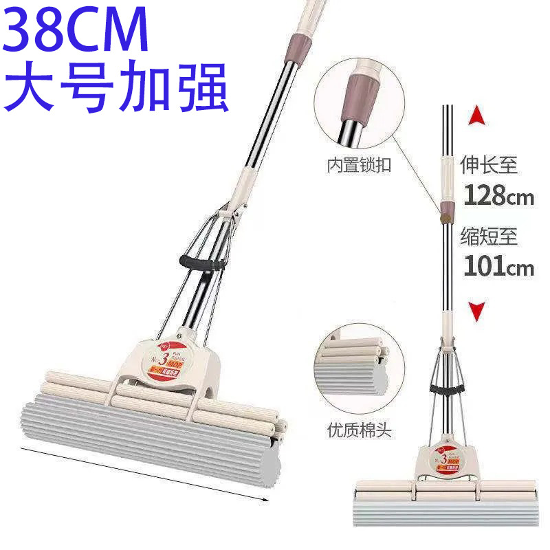 38CM 스펀지 압착 걸레 공식 스테인레스 스틸 핸즈프리 롤러 코튼 걸레 흡수성 걸레 Shaoyi스토어 가기