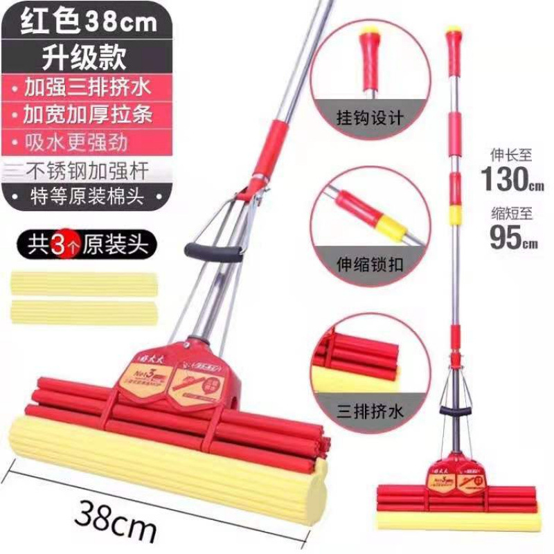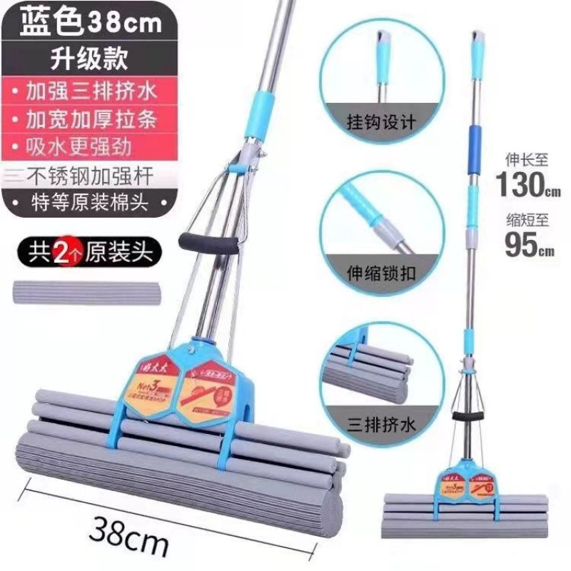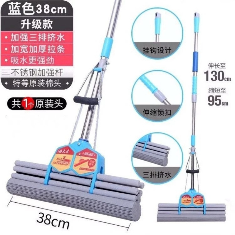 38CM 스펀지 압착 걸레 공식 스테인레스 스틸 핸즈프리 롤러 코튼 걸레 흡수성 걸레 Shaoyi