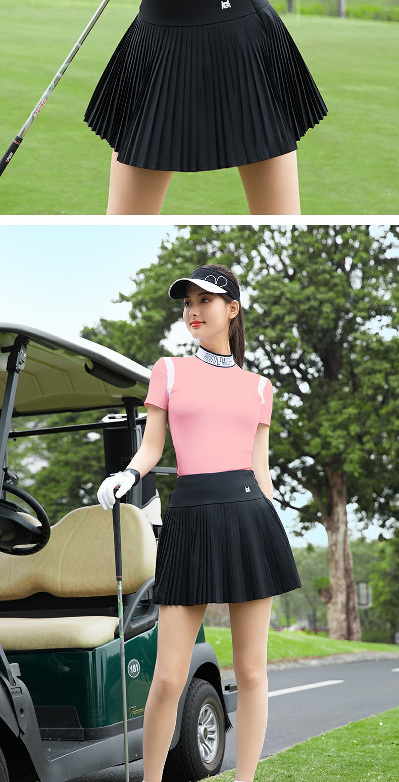 2025 골프 여자 아이스 실크 봄과 여름 의류 여자 테니스 탑 스포츠 스커트 티셔츠 세트스토어 가기