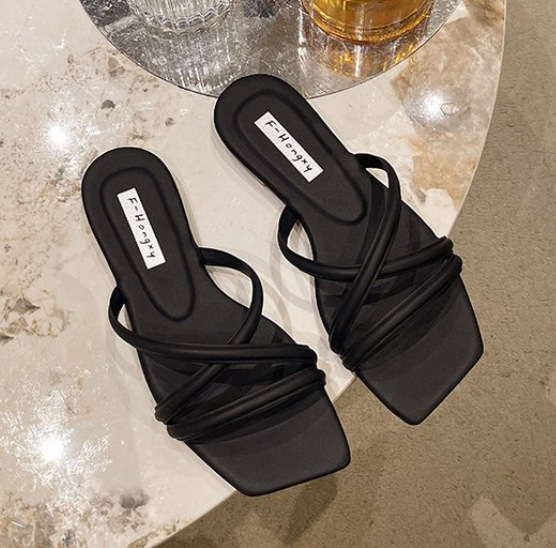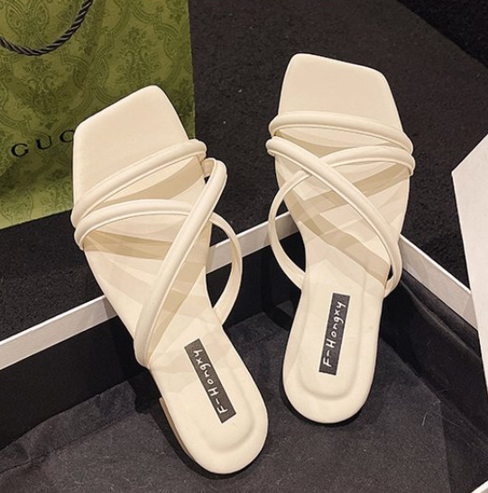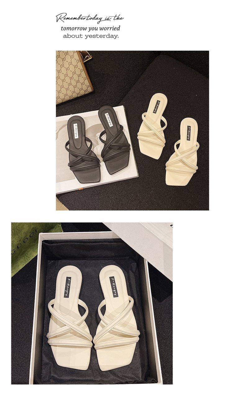 2025 여름 새로운 플러스 사이즈 플랫 슬리퍼 여성용 아우터웨어 크로스 오픈 토 스퀘어 헤드 원모 패션 샌들 도매스토어 가기