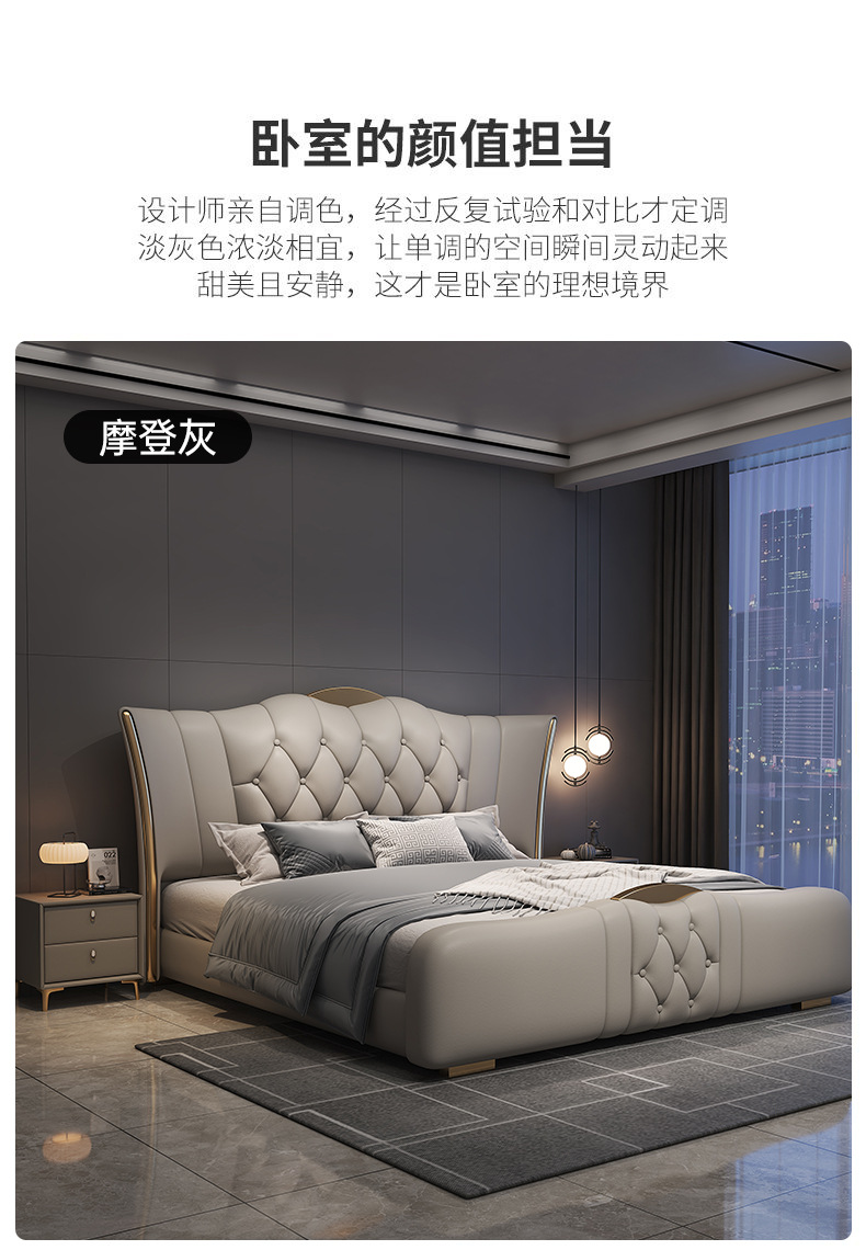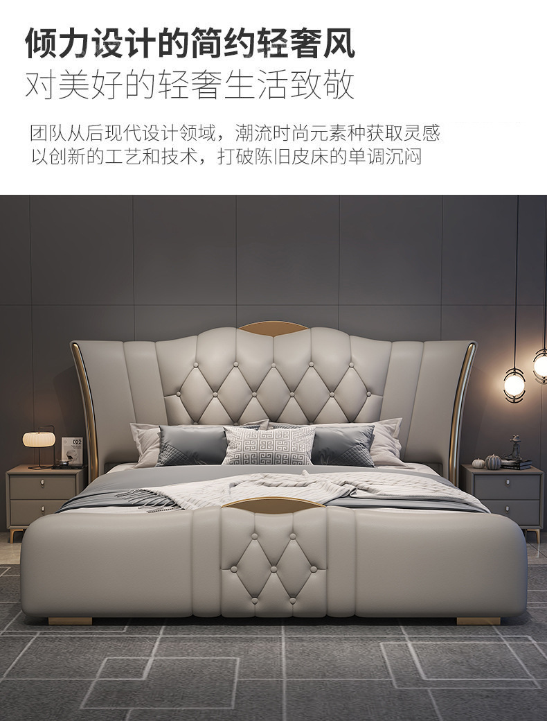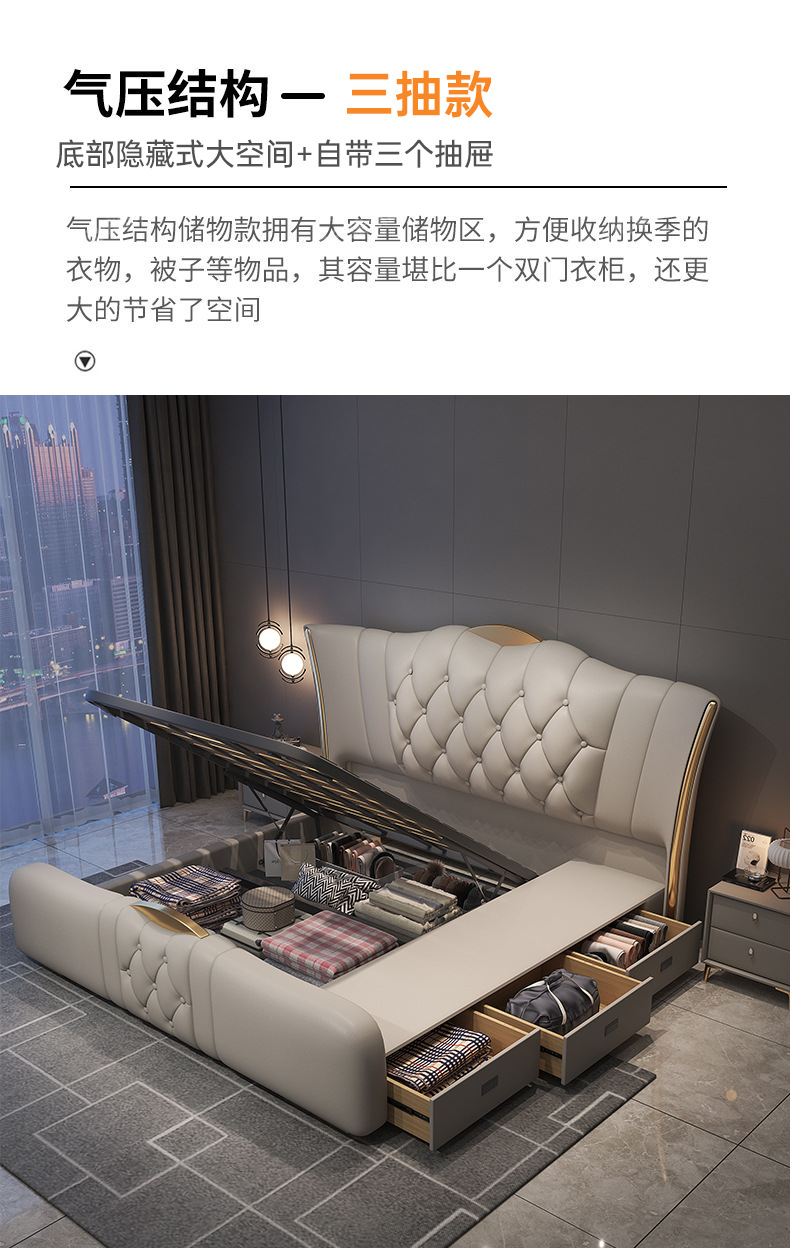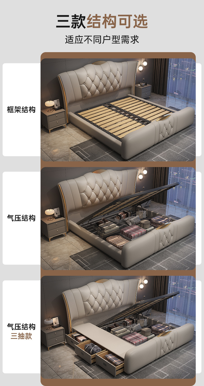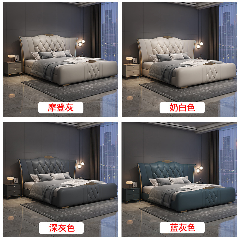 이탈리아 스타일의 가벼운 럭셔리 가죽 침대 1.8m 더블 침대, 주 침실 가정용 침실 소프트 가죽 침대 2m 하이박스 수납 침대스토어 가기
