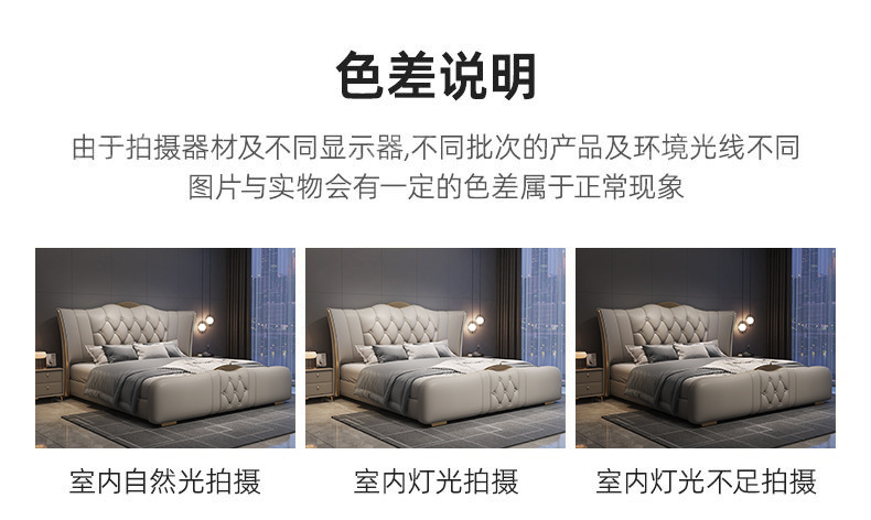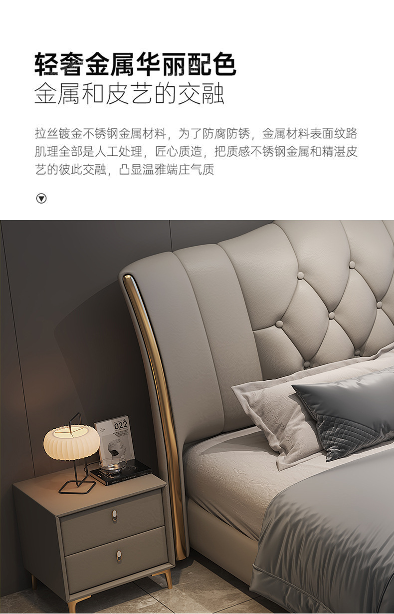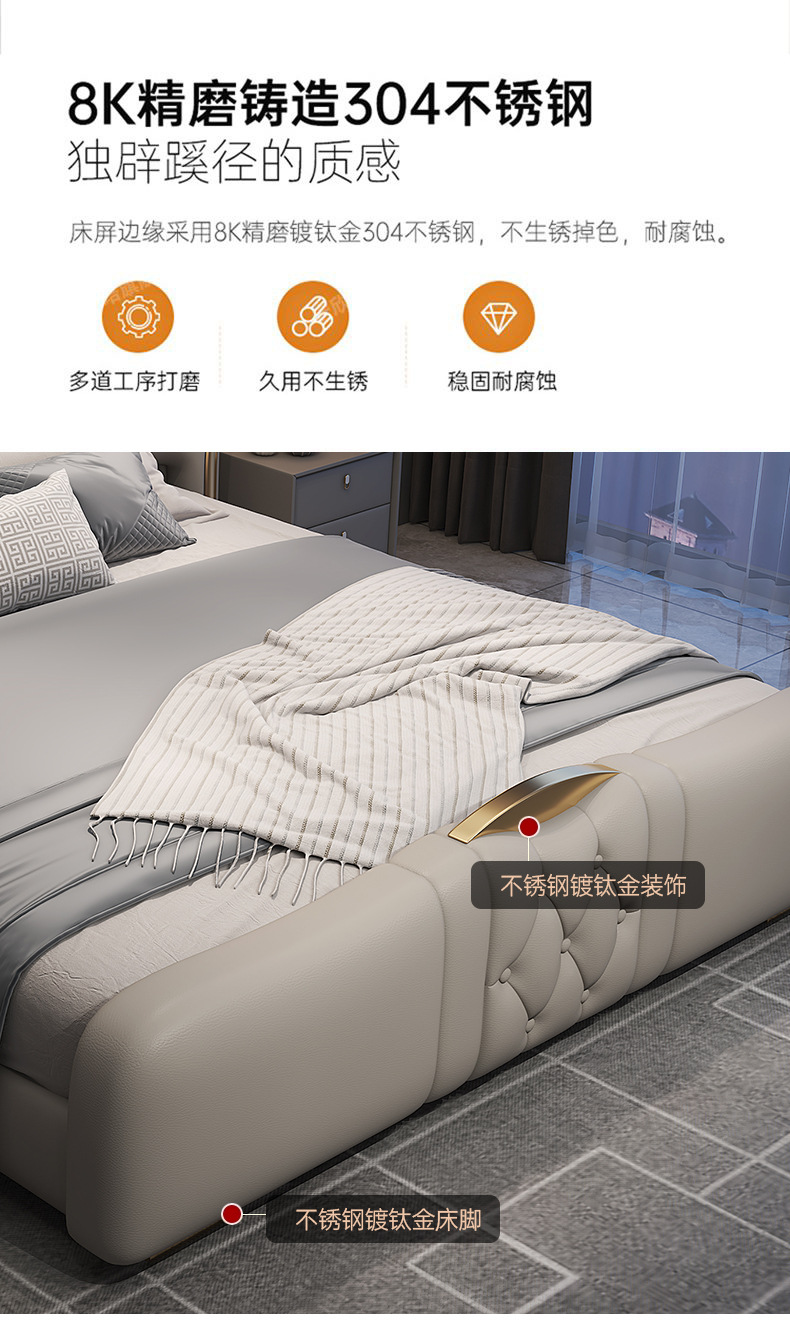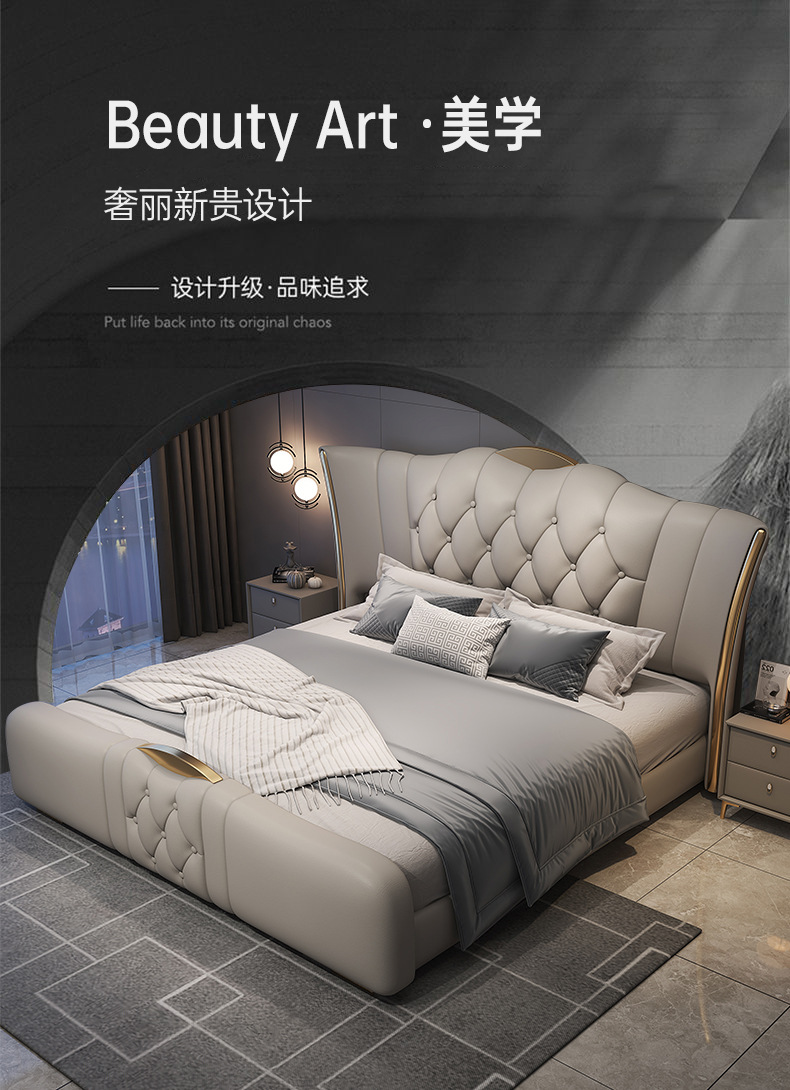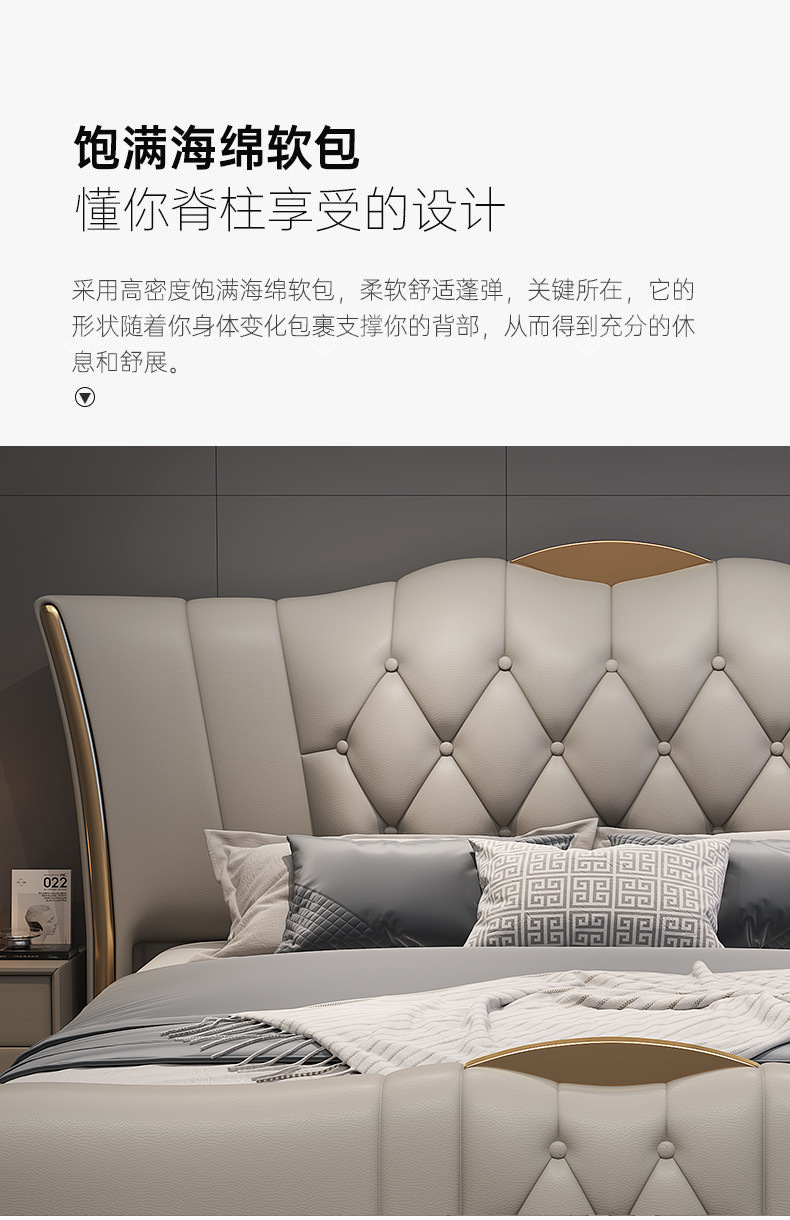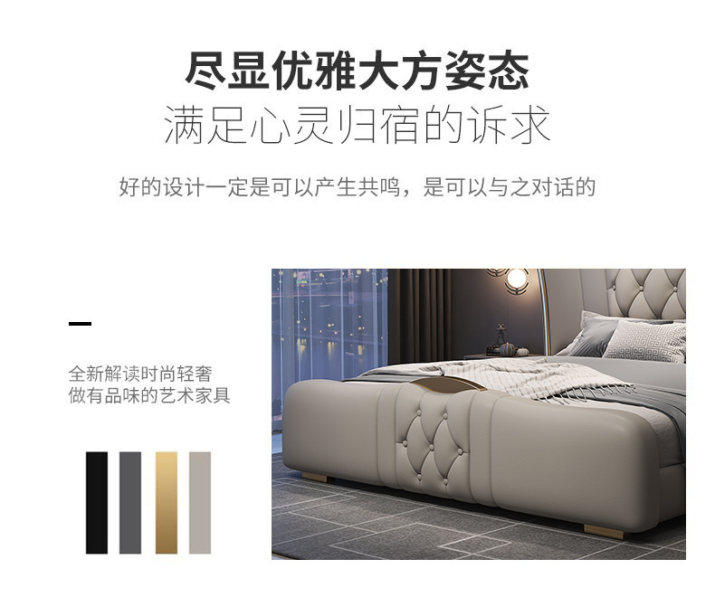 이탈리아 스타일의 가벼운 럭셔리 가죽 침대 1.8m 더블 침대, 주 침실 가정용 침실 소프트 가죽 침대 2m 하이박스 수납 침대스토어 가기
