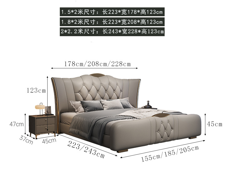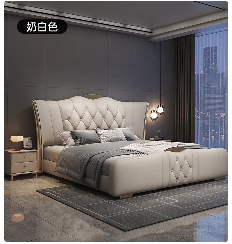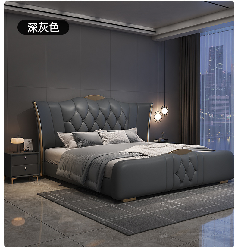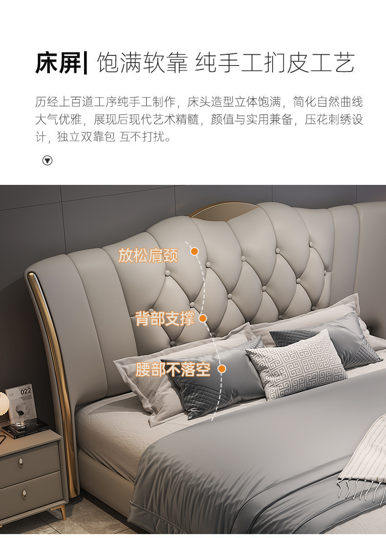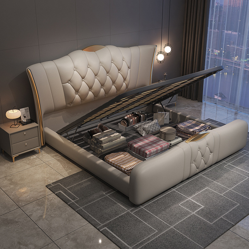 이탈리아 스타일의 가벼운 럭셔리 가죽 침대 1.8m 더블 침대, 주 침실 가정용 침실 소프트 가죽 침대 2m 하이박스 수납 침대