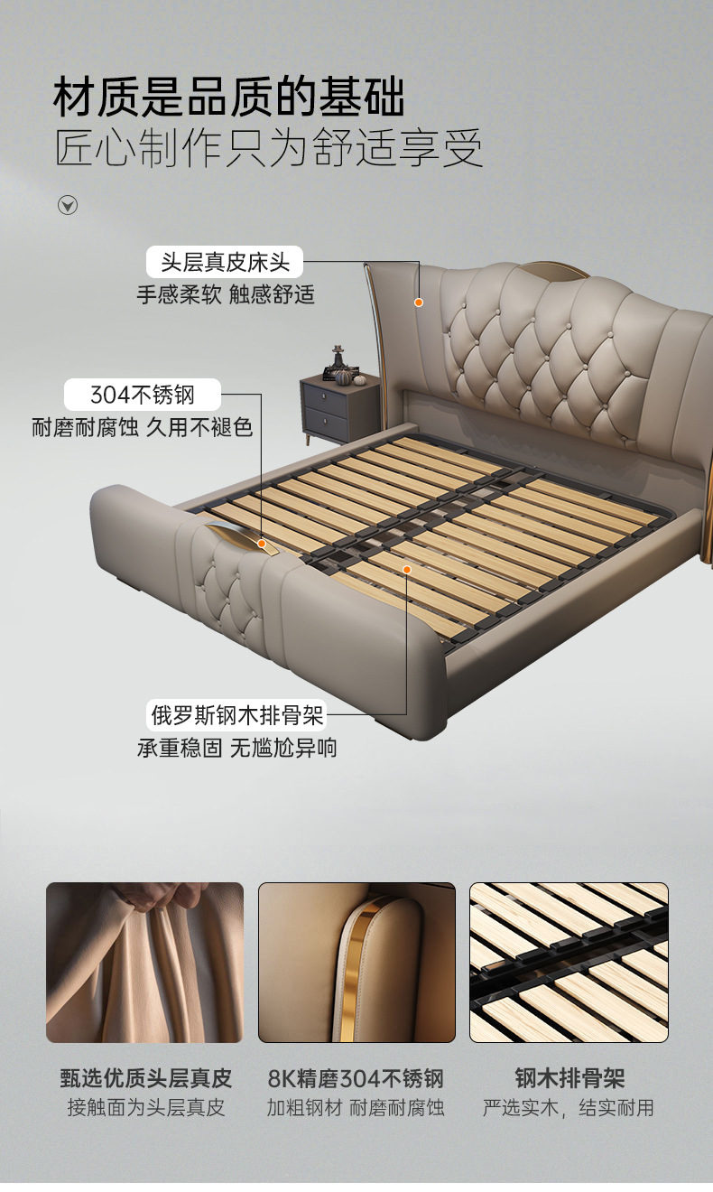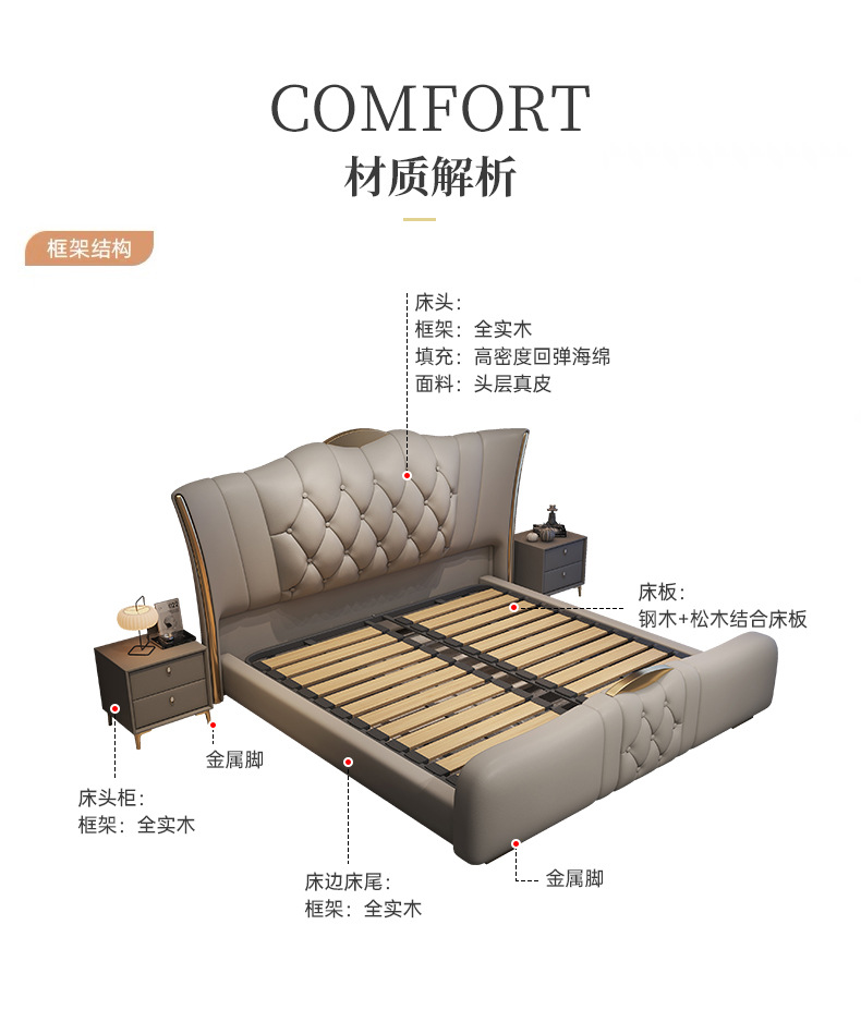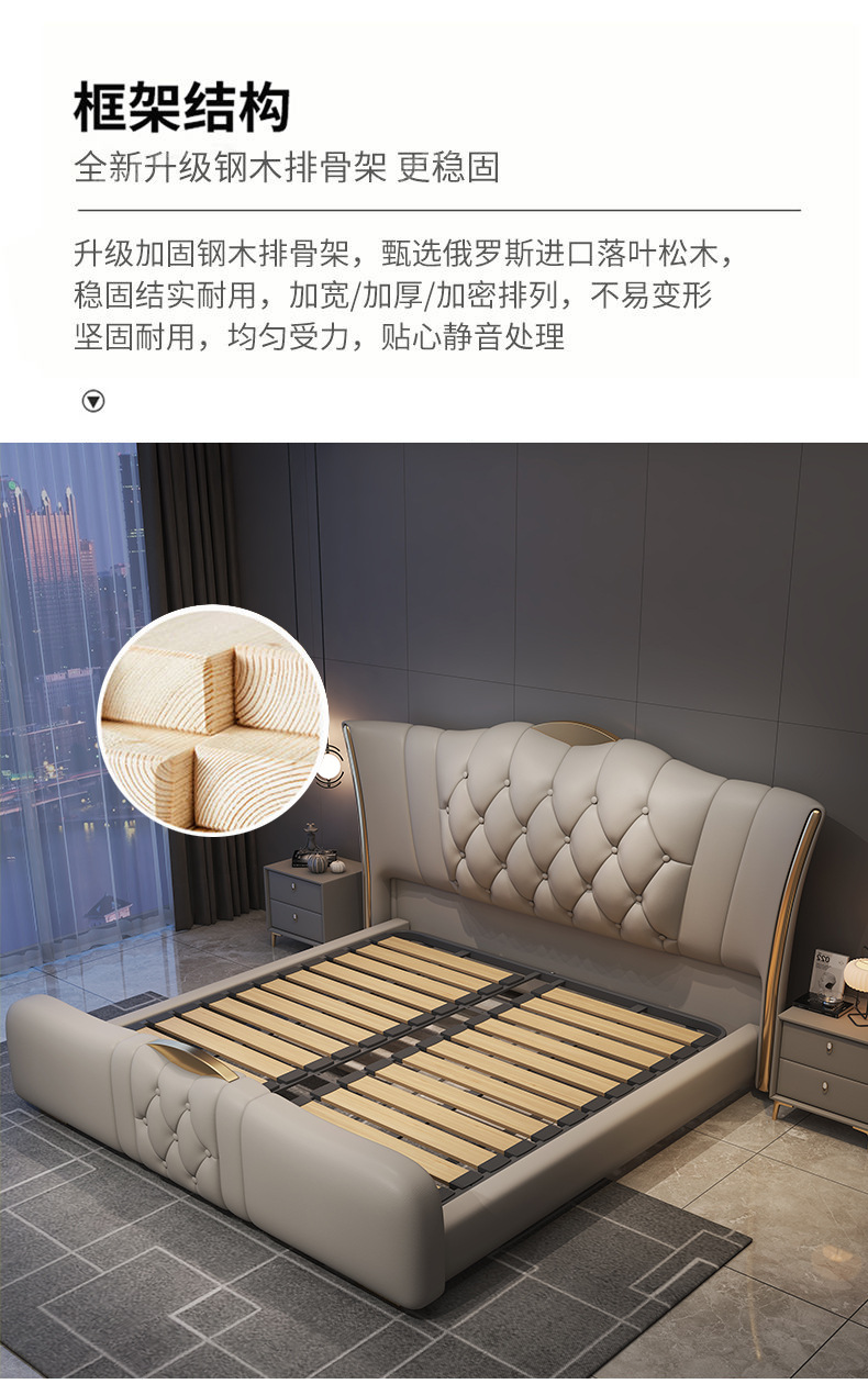• 2m 프레임 구조 [고급 강철 목재 사일런트 침대판]
