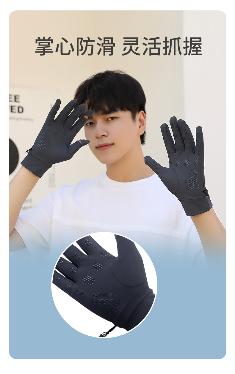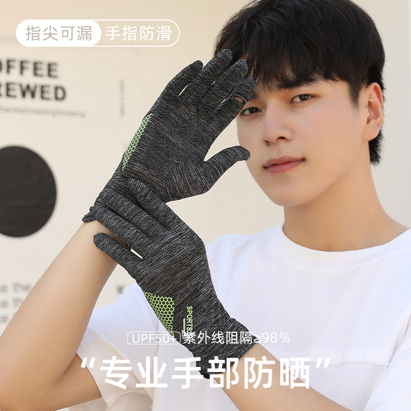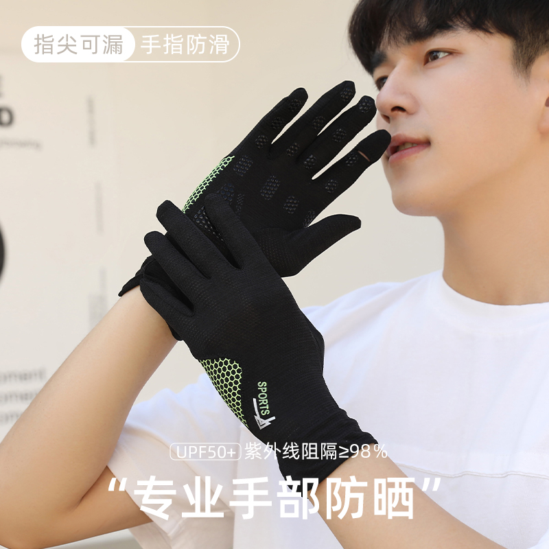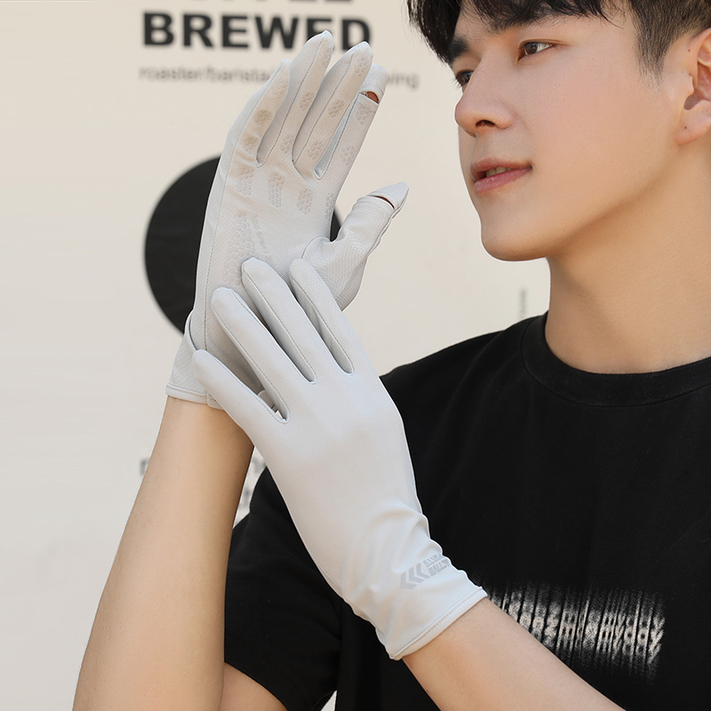 태양 보호 장갑 남성용 얼음 실크 얇은 여름 승마 운전 미끄럼 방지 낚시 UV 보호 터치 스크린