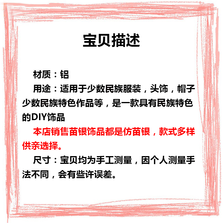 새로운 소수 실버 장식품 실버 조각 Miao 실버 장식품 알루미늄 모자 액세서리 무대 의류 DIY 액세서리스토어 가기