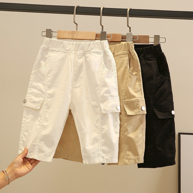 남자 어린이 반바지 새로운 한국 스타일 어린이 카프리 바지 서양식 스티칭 크레인 바지 어린이 유행 유행 바지스토어 가기