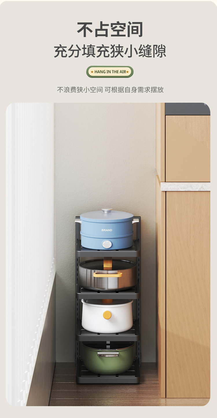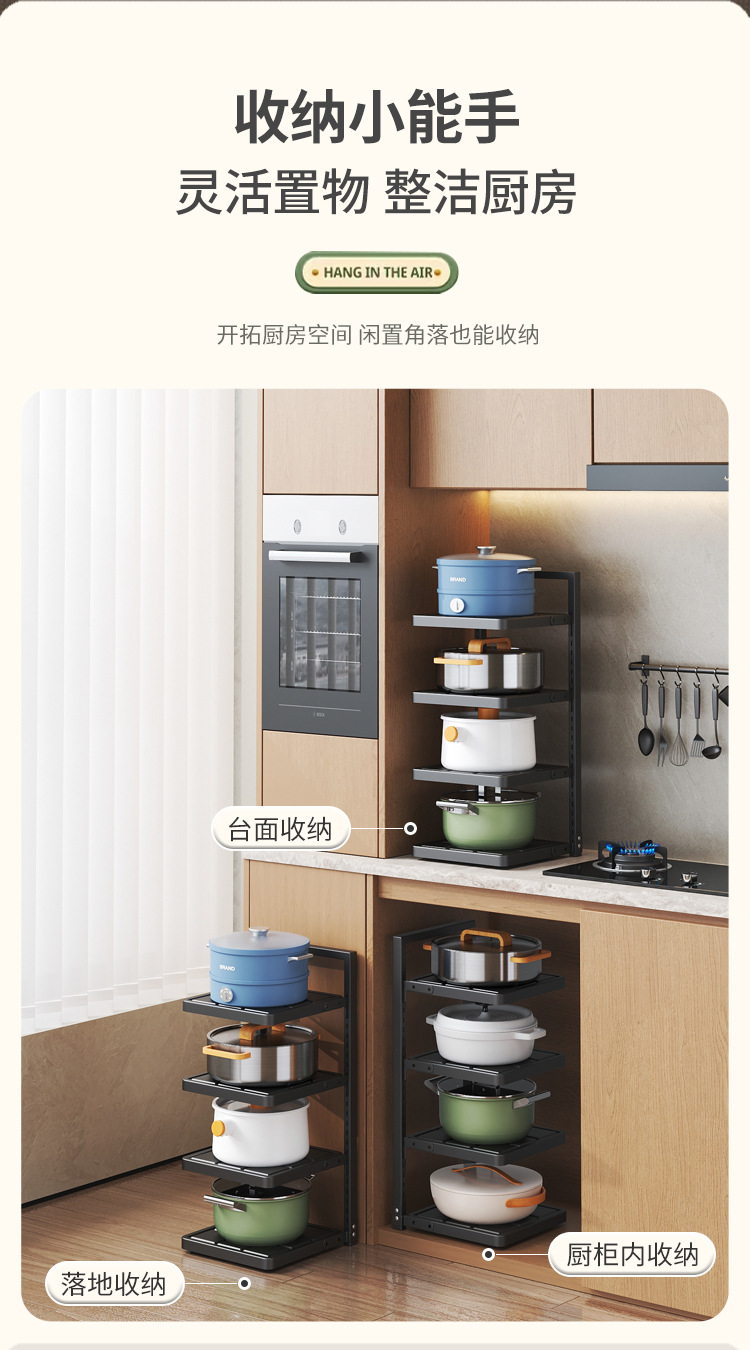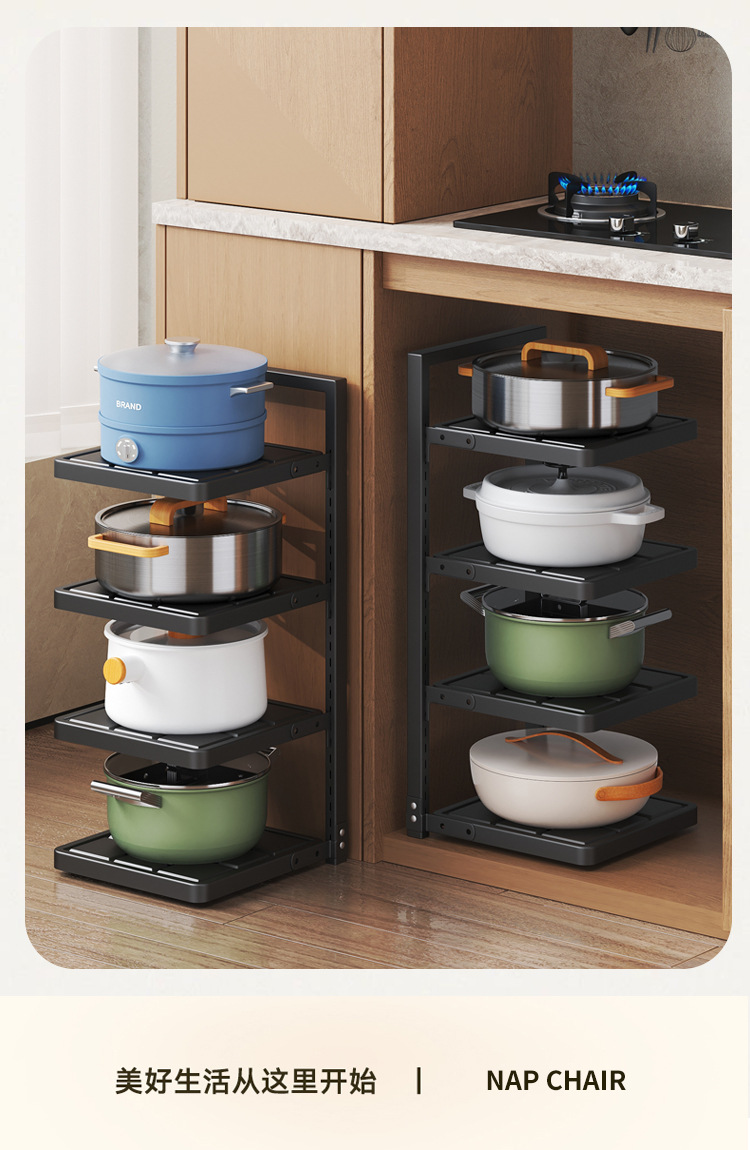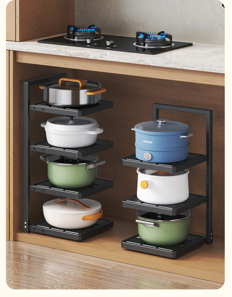 주방 보관 랙 가정용 다층 냄비 저장 랙 다기능 바닥 서 낮은 싱크 캐비닛 레이어드 팟 랙
