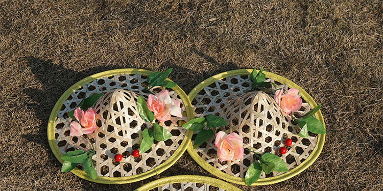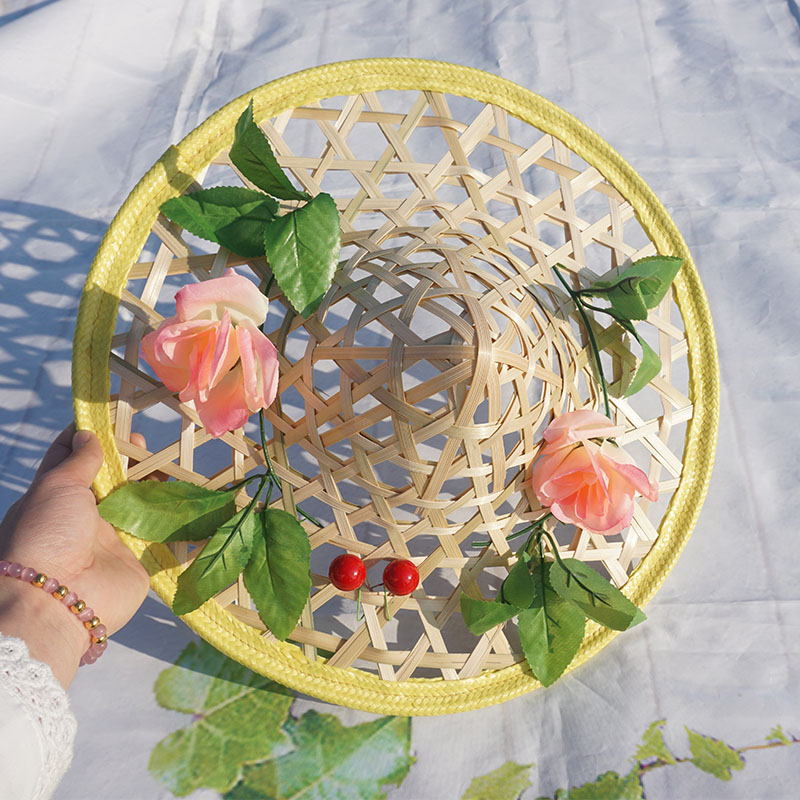 대나무 모자 어린이 댄스 프로그램 공연 소품 대나무 중공 꽃 성인 광장 댄스 밀짚 모자