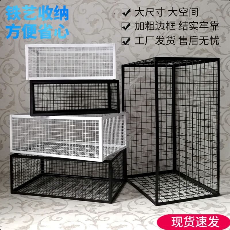 1VPR 중공 메쉬 철 바구니 직사각형 와이어 저장 바구니 대형 철 애완 동물 프레임 흑백 데스크탑 보관스토어 가기