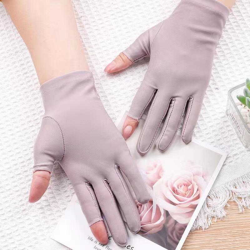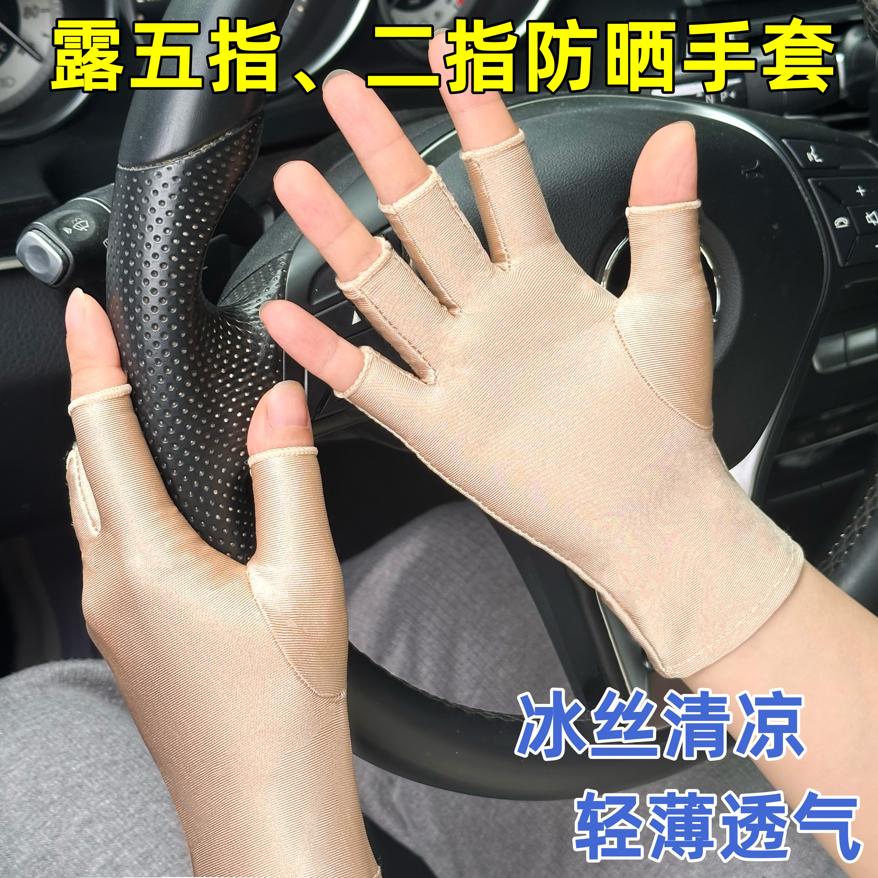 하프 핑거 아이스 실크 얇은 선 스크린 장갑 여름 봄과 가을 이슬 두 손가락 차 따기 승마 운전 높은 탄성 편안한 남성과 여성