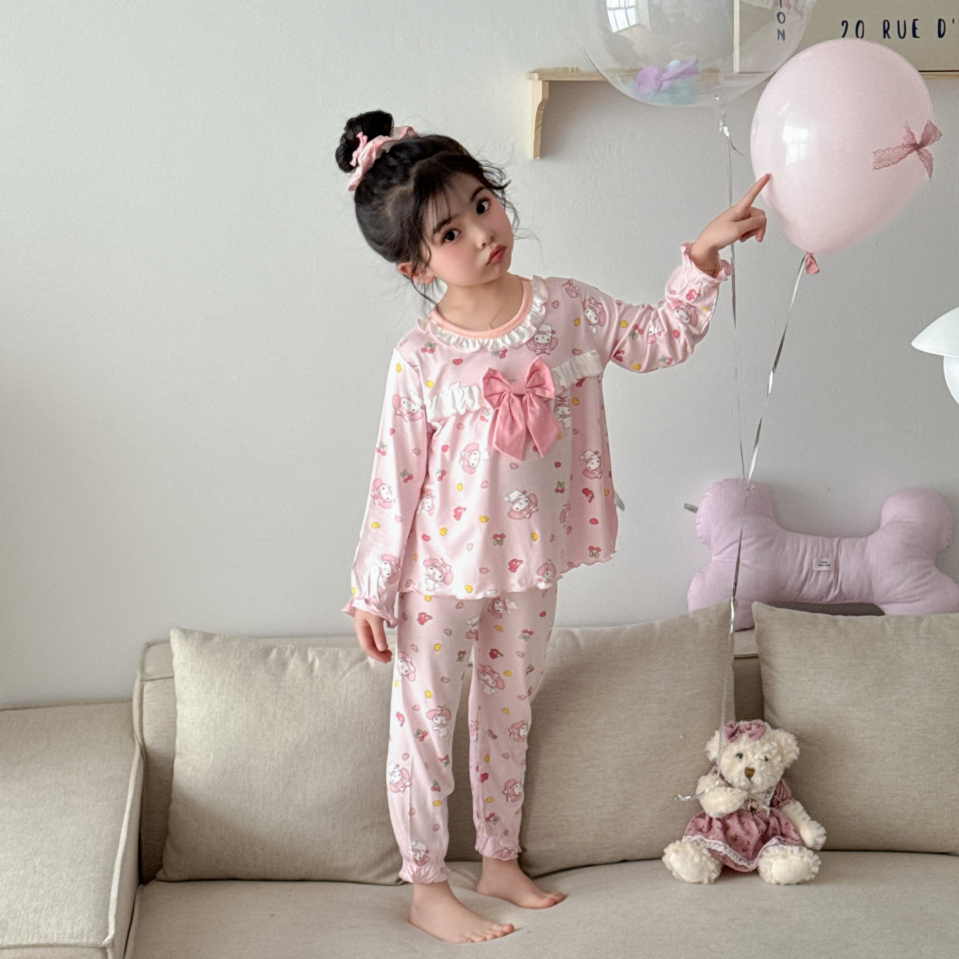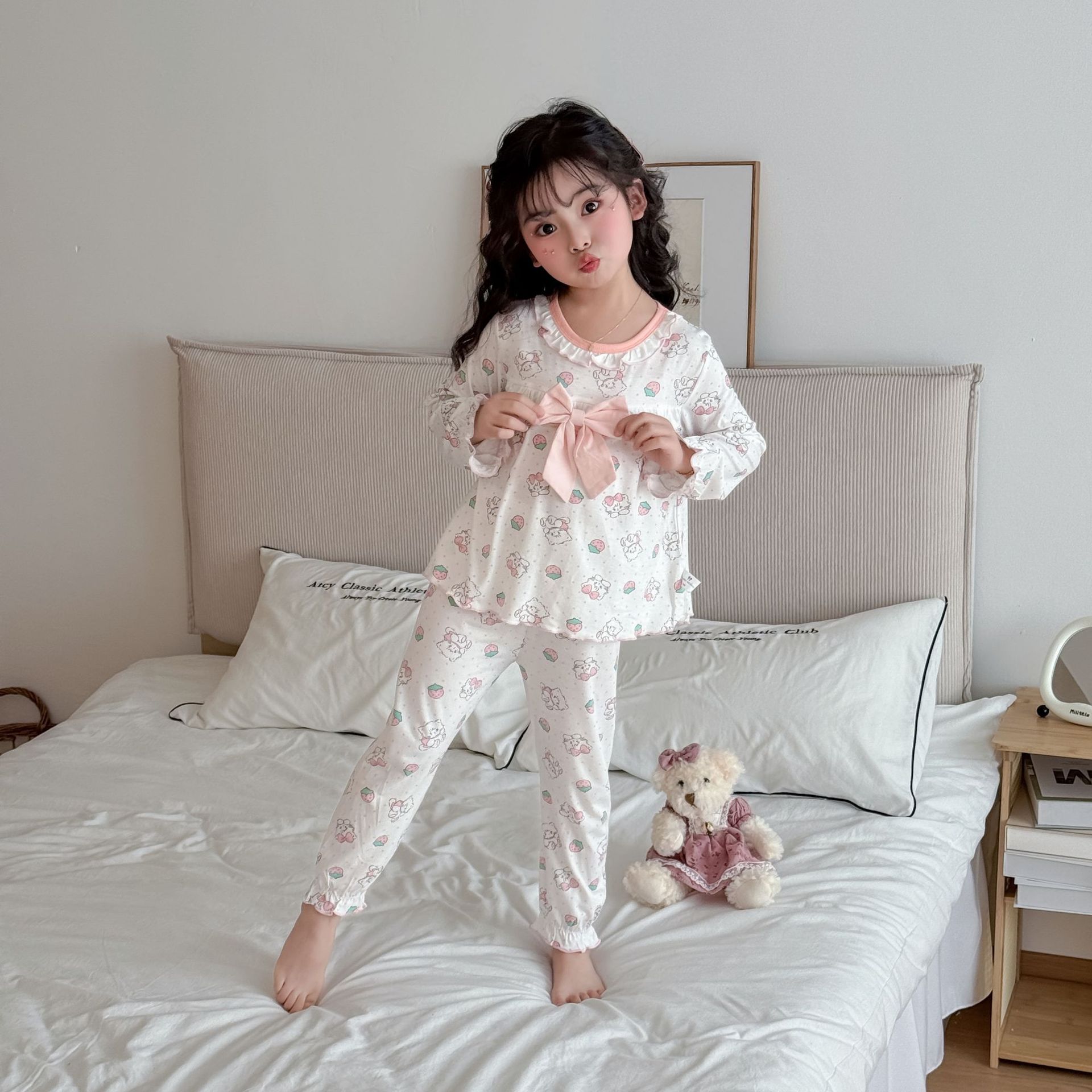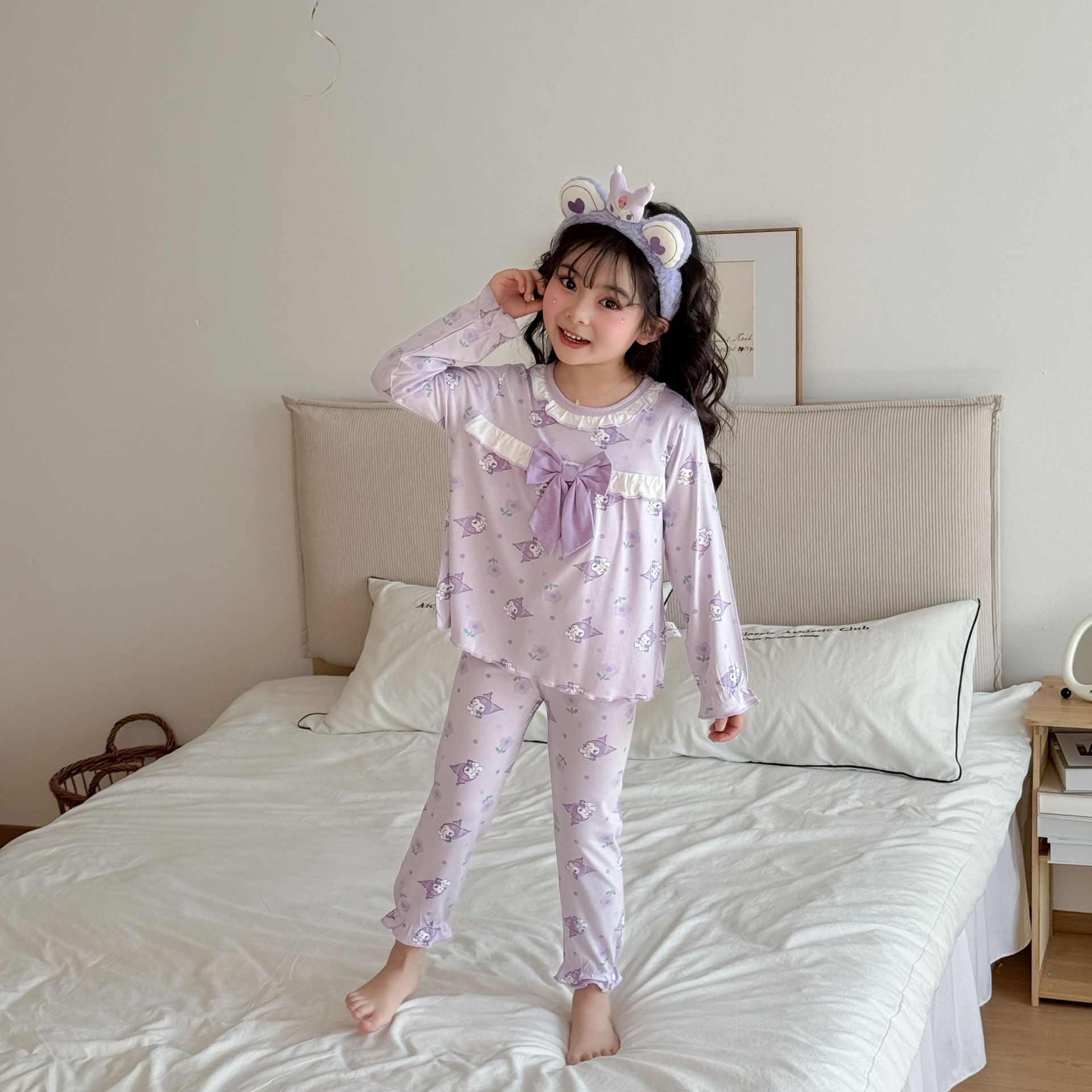 [Modal] 2025 년 여자 홈 의류 어린이 모달 파자마 사계절 긴팔 만화 활 세트
