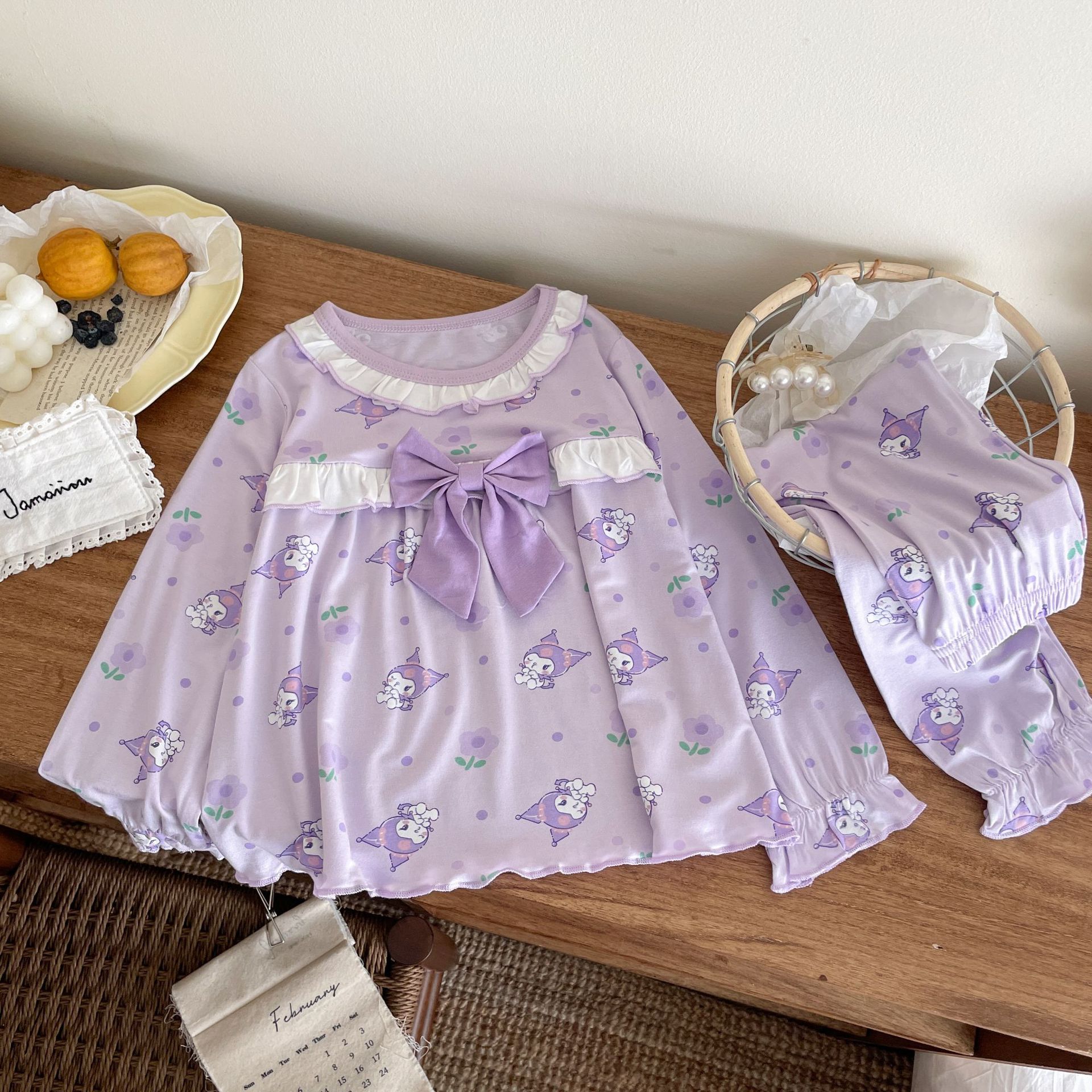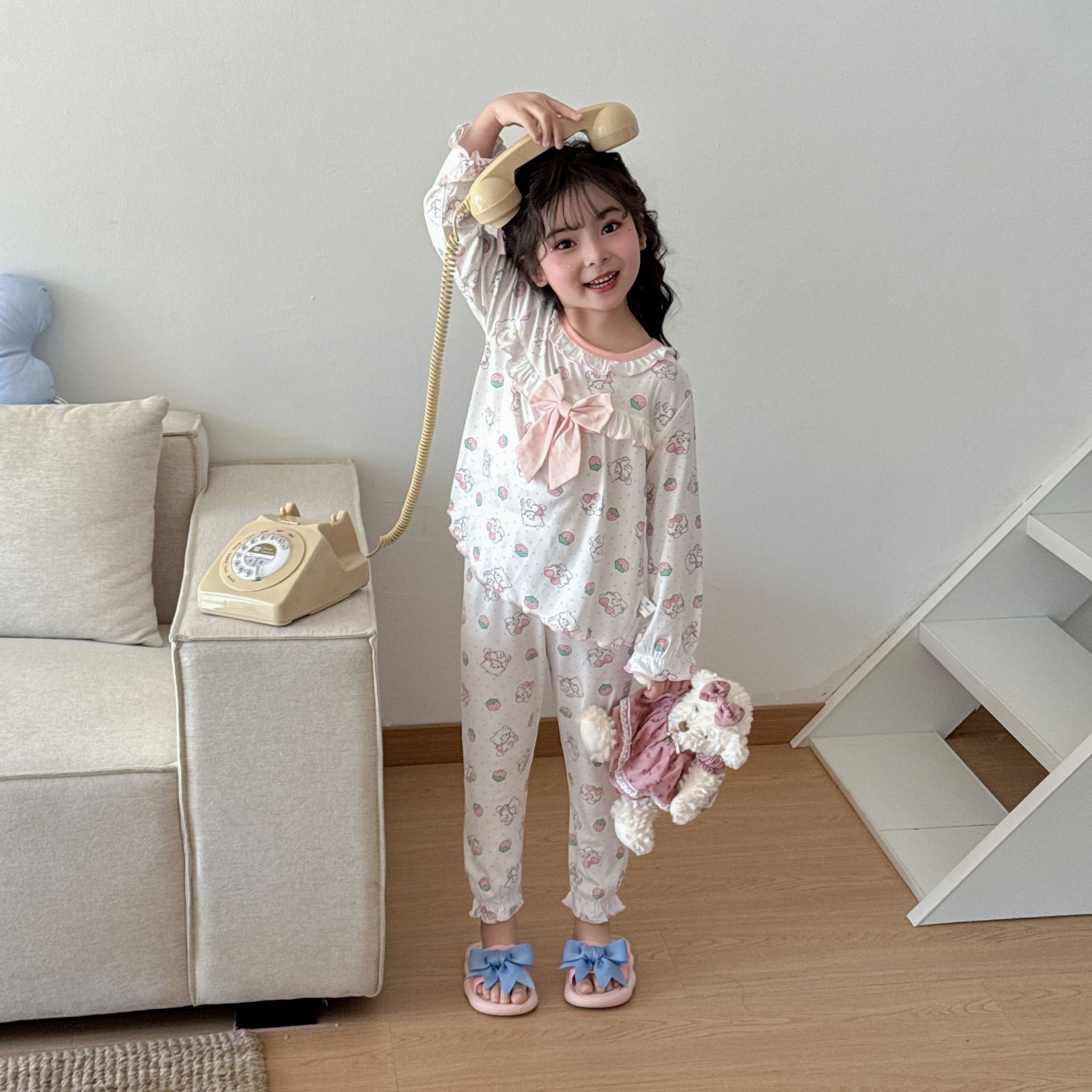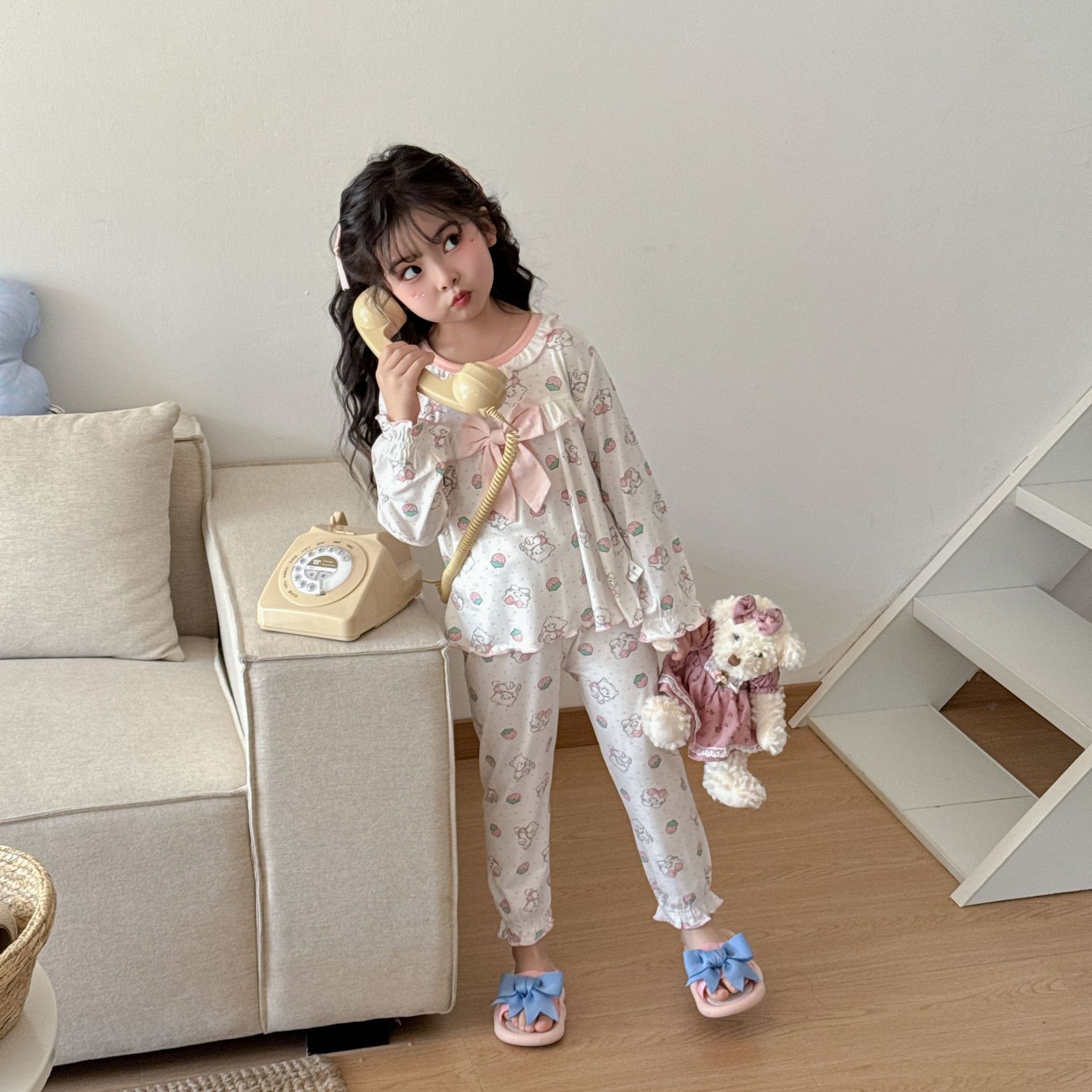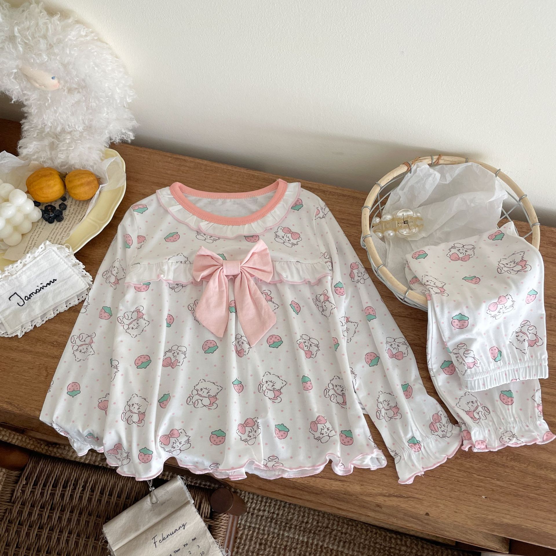 [Modal] 2025 년 여자 홈 의류 어린이 모달 파자마 사계절 긴팔 만화 활 세트