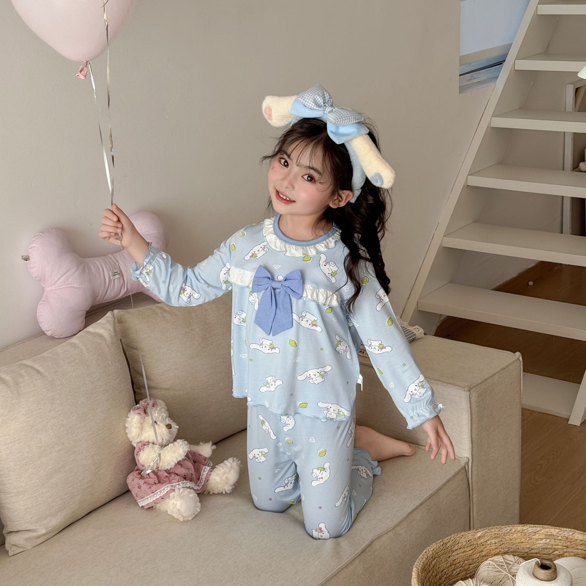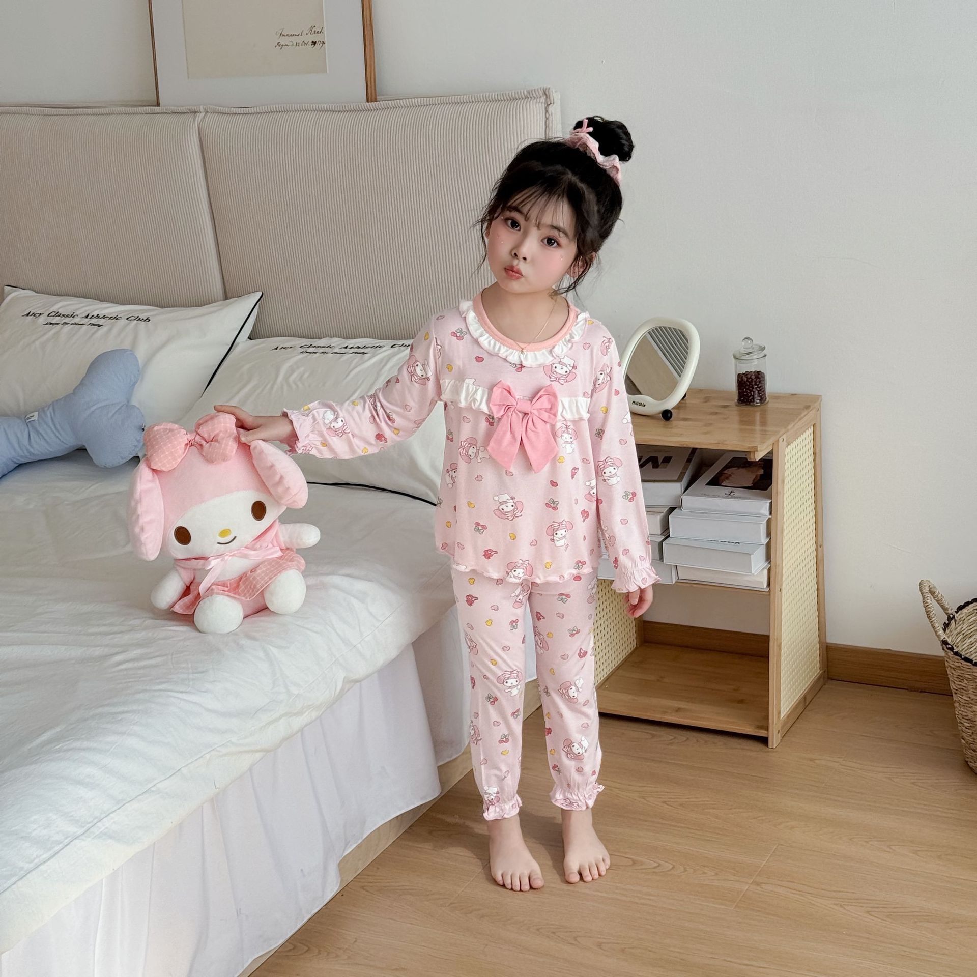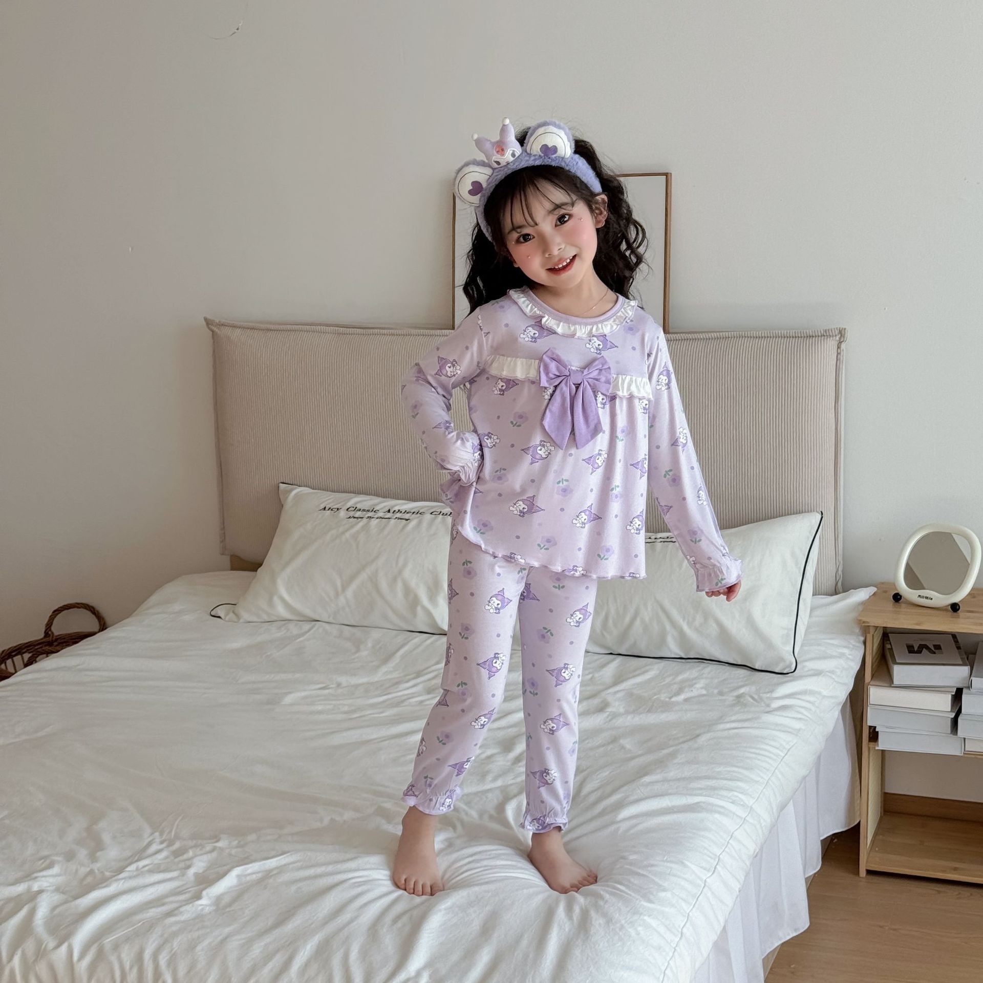 [Modal] 2025 년 여자 홈 의류 어린이 모달 파자마 사계절 긴팔 만화 활 세트스토어 가기