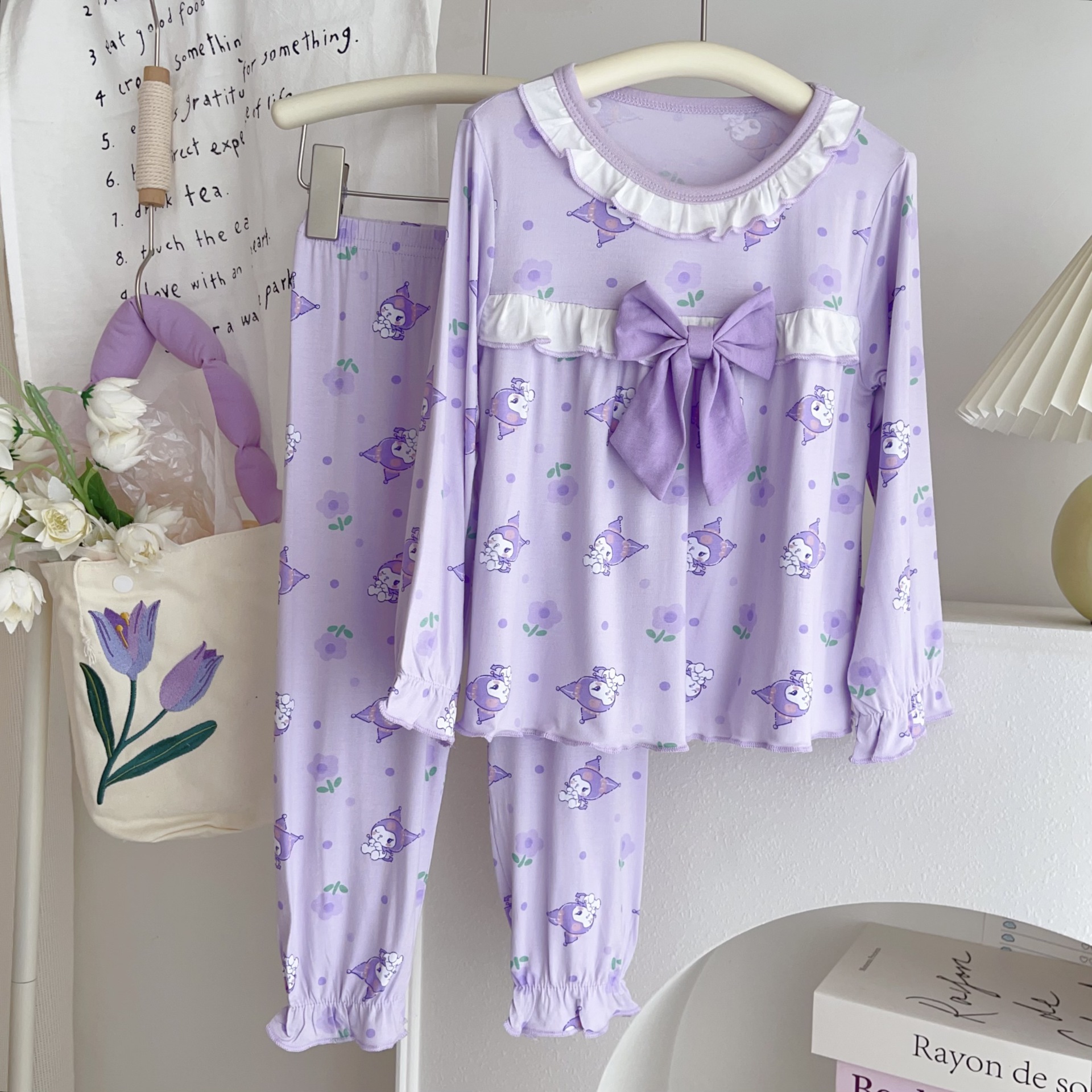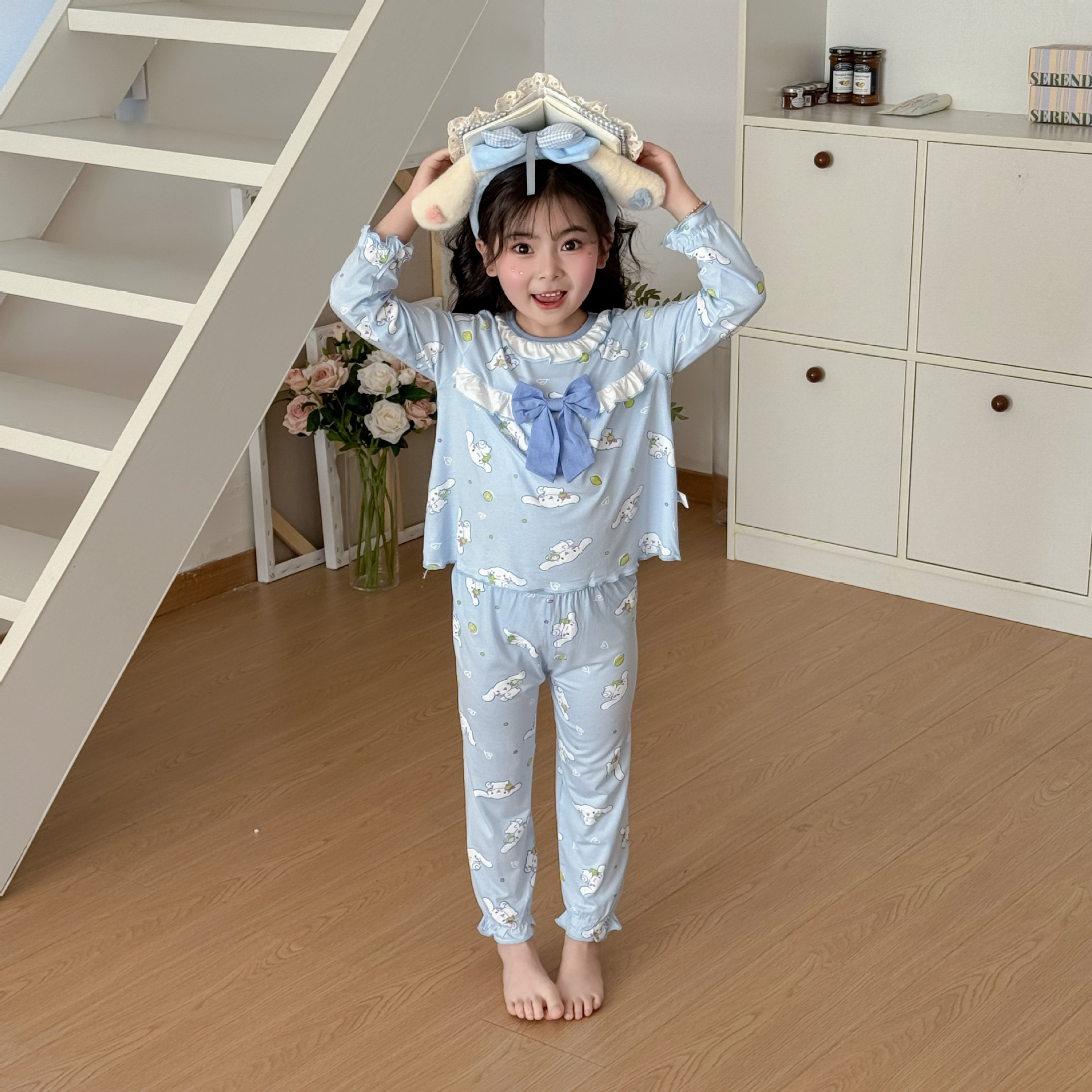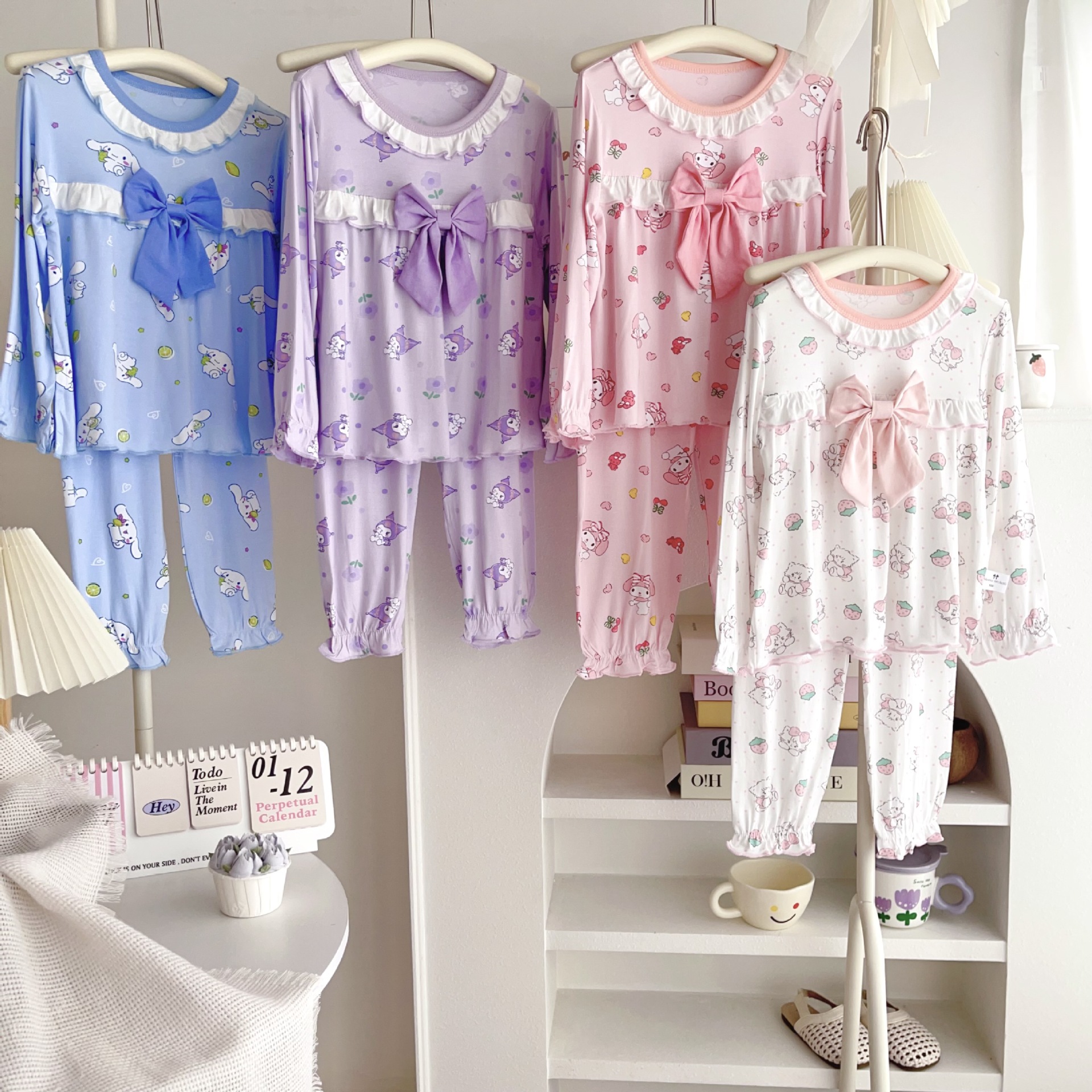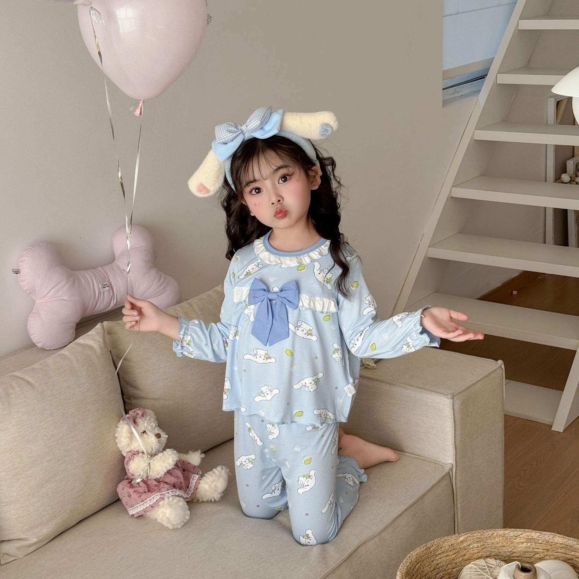 [Modal] 2025 년 여자 홈 의류 어린이 모달 파자마 사계절 긴팔 만화 활 세트스토어 가기