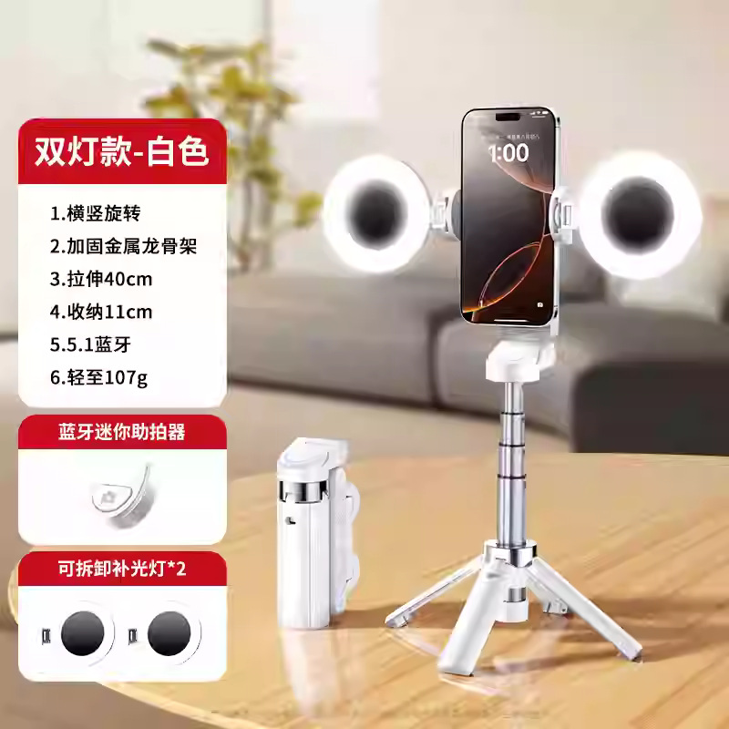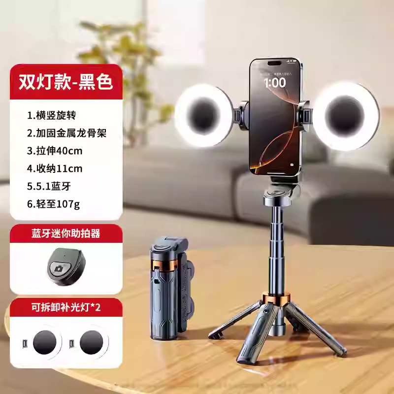 국경 간 JC25 미니 셀카 스틱 휴대용 여행 vlog 휴대 전화 사진 흔들림 방지 라이브 바닥 4 중 재고