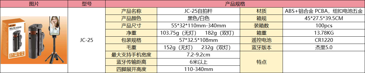 국경 간 JC25 미니 셀카 스틱 휴대용 여행 vlog 휴대 전화 사진 흔들림 방지 라이브 바닥 4 중 재고스토어 가기