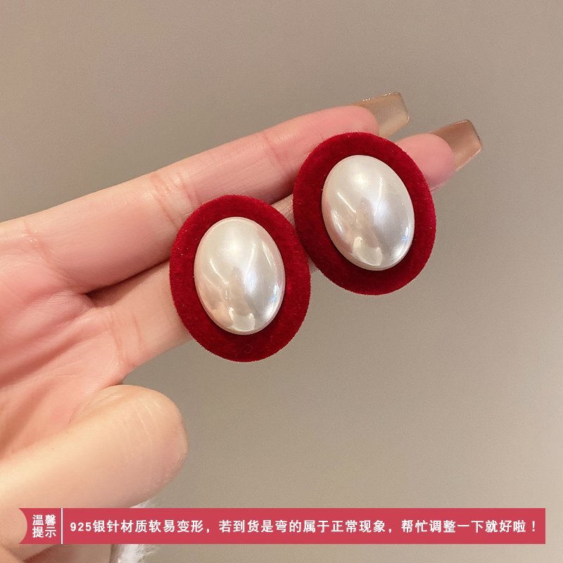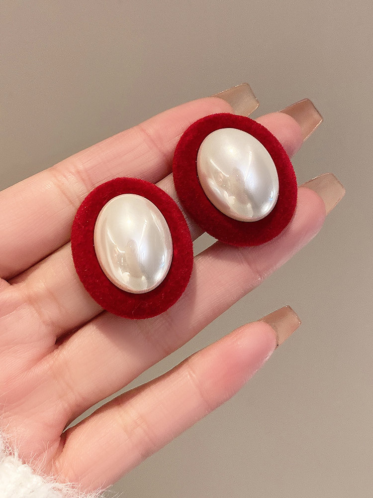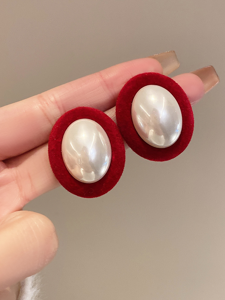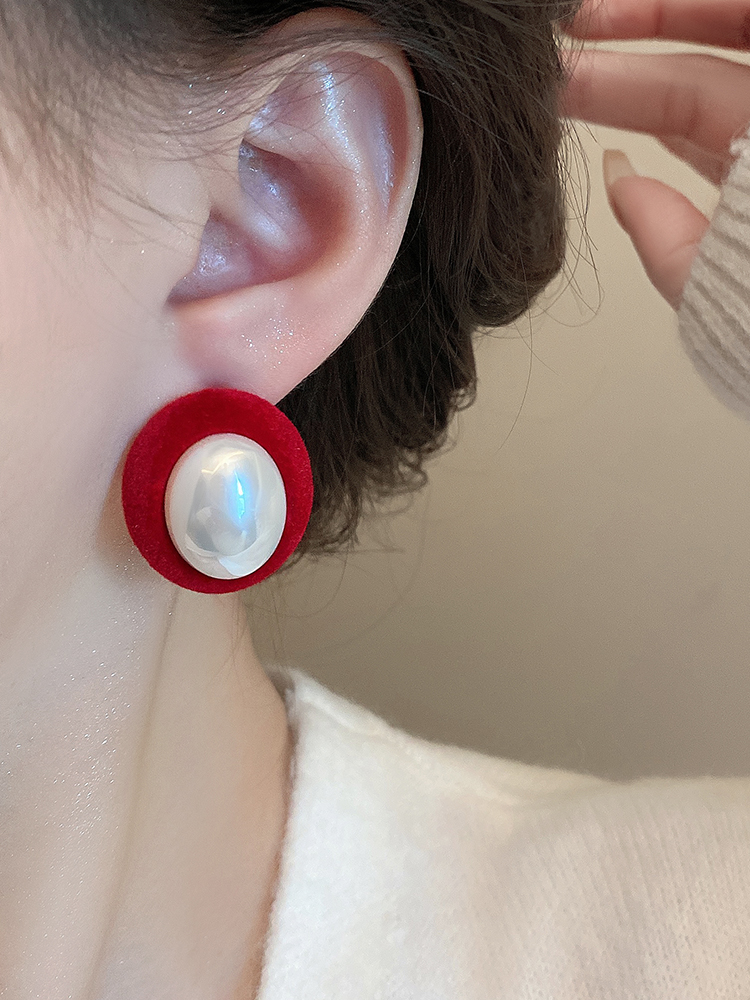 • 레드 플로킹 진주 귀걸이