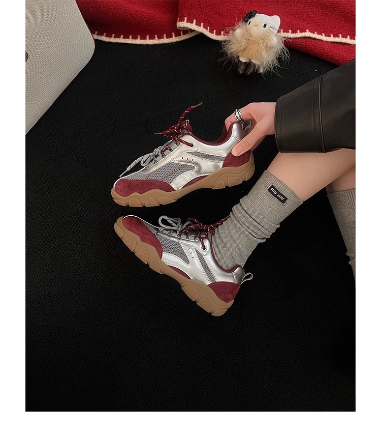 Cowhide 버전 ~ 두꺼운 밑창 독일 훈련 신발 여성의 2025 봄 새 발-작은 두꺼운 밑창 캐주얼 forrest gump 신발 메쉬 흰색 신발스토어 가기