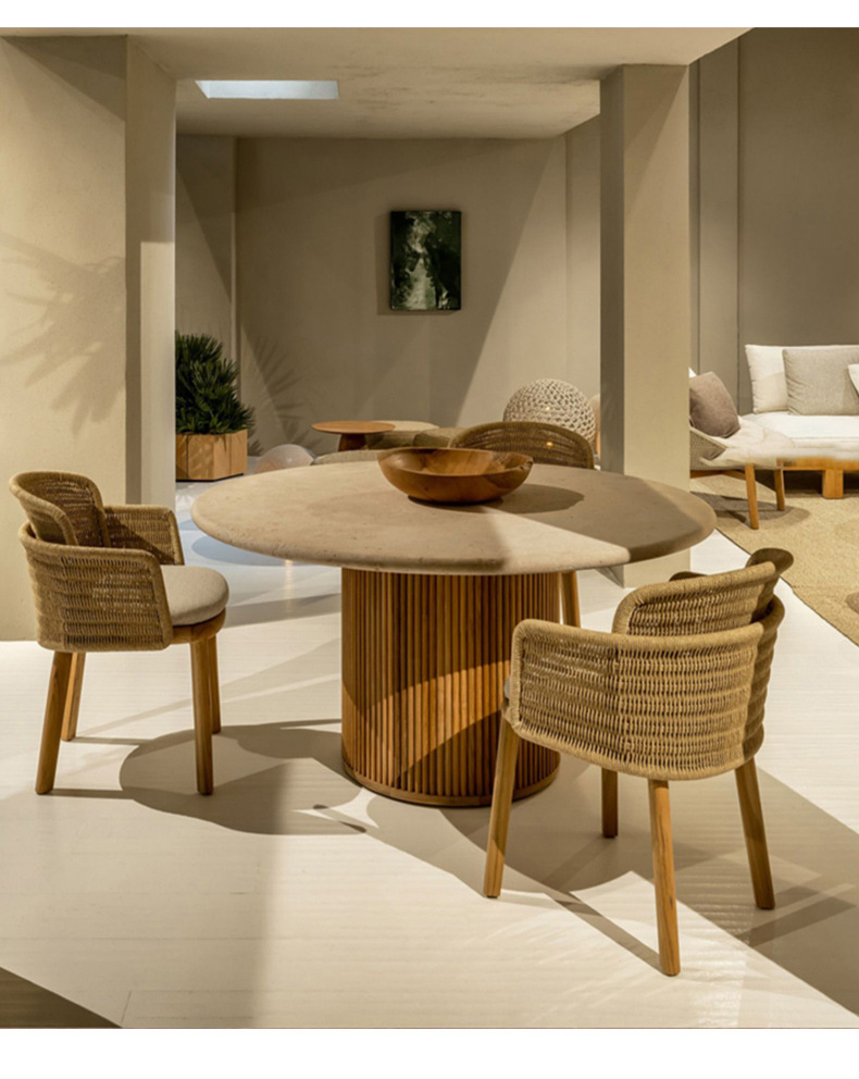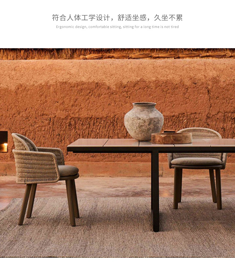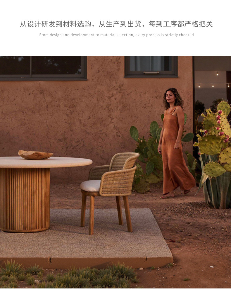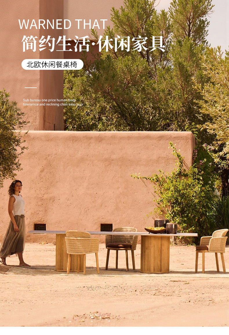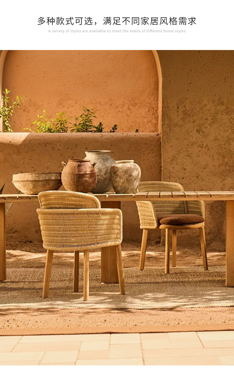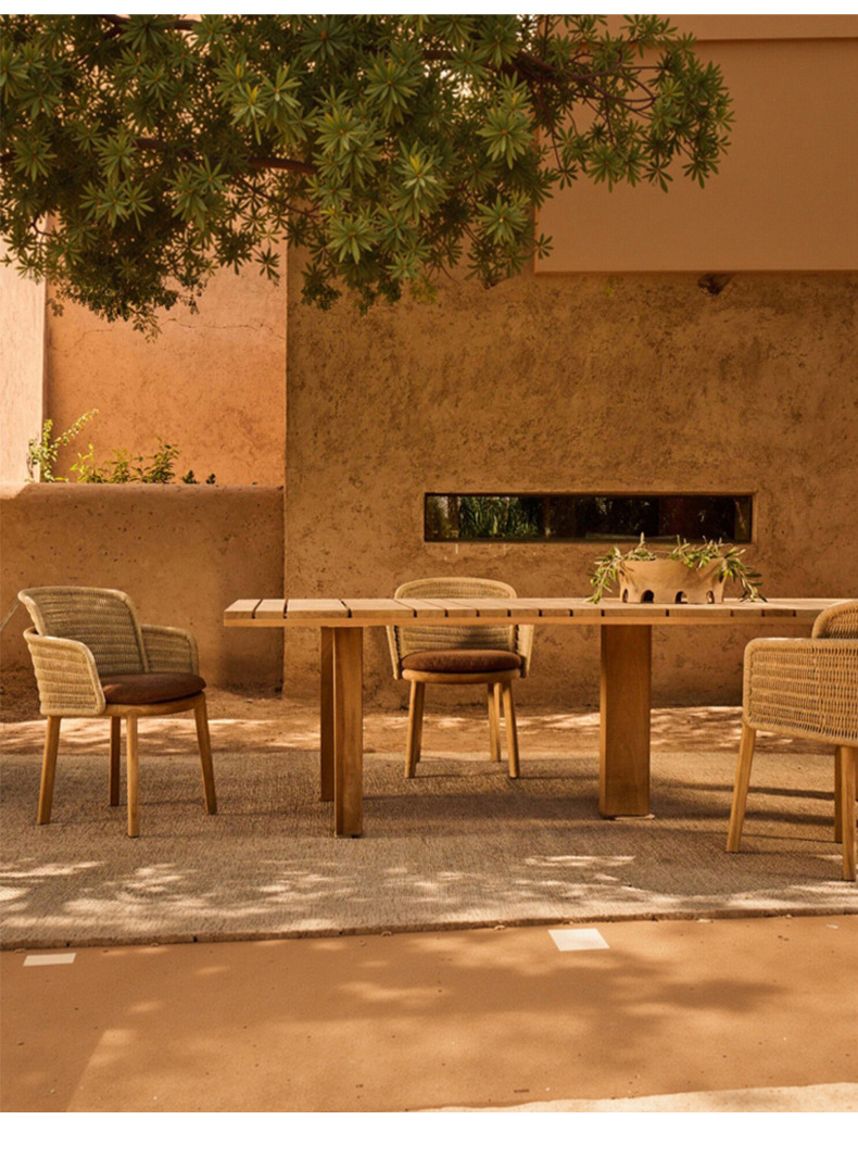 야외 테이블과 의자 식탁 식당 의자 등나무 가구 정원 빌라 안뜰 야외 방수 긴 테이블 단단한 나무 티크 조합스토어 가기