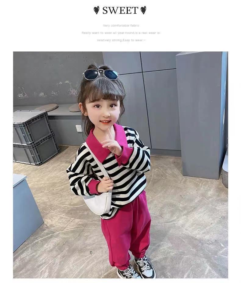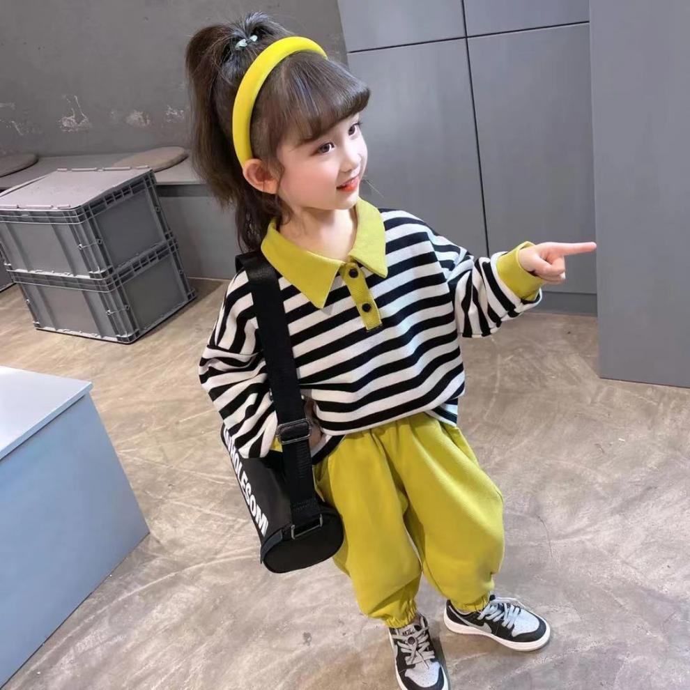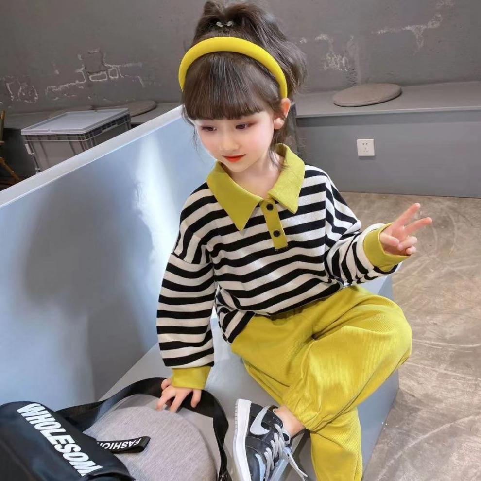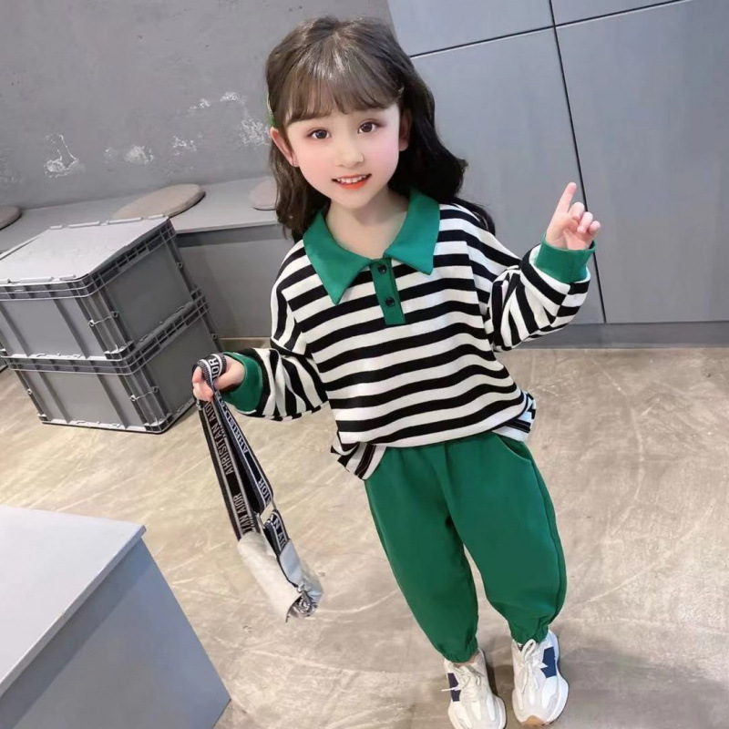 소녀 느슨한 세트 2025 새로운 봄과 가을 서양식 줄무늬 어린이와 아기 소녀의 가을 투피스 세트스토어 가기